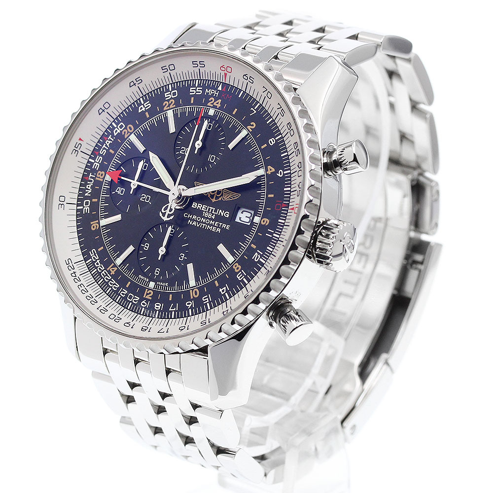 ブライトリング BREITLING A24322 ナビタイマー ワールド クロノグラフ GMT 自動巻き メンズ 美品 箱・保証書付き_911387