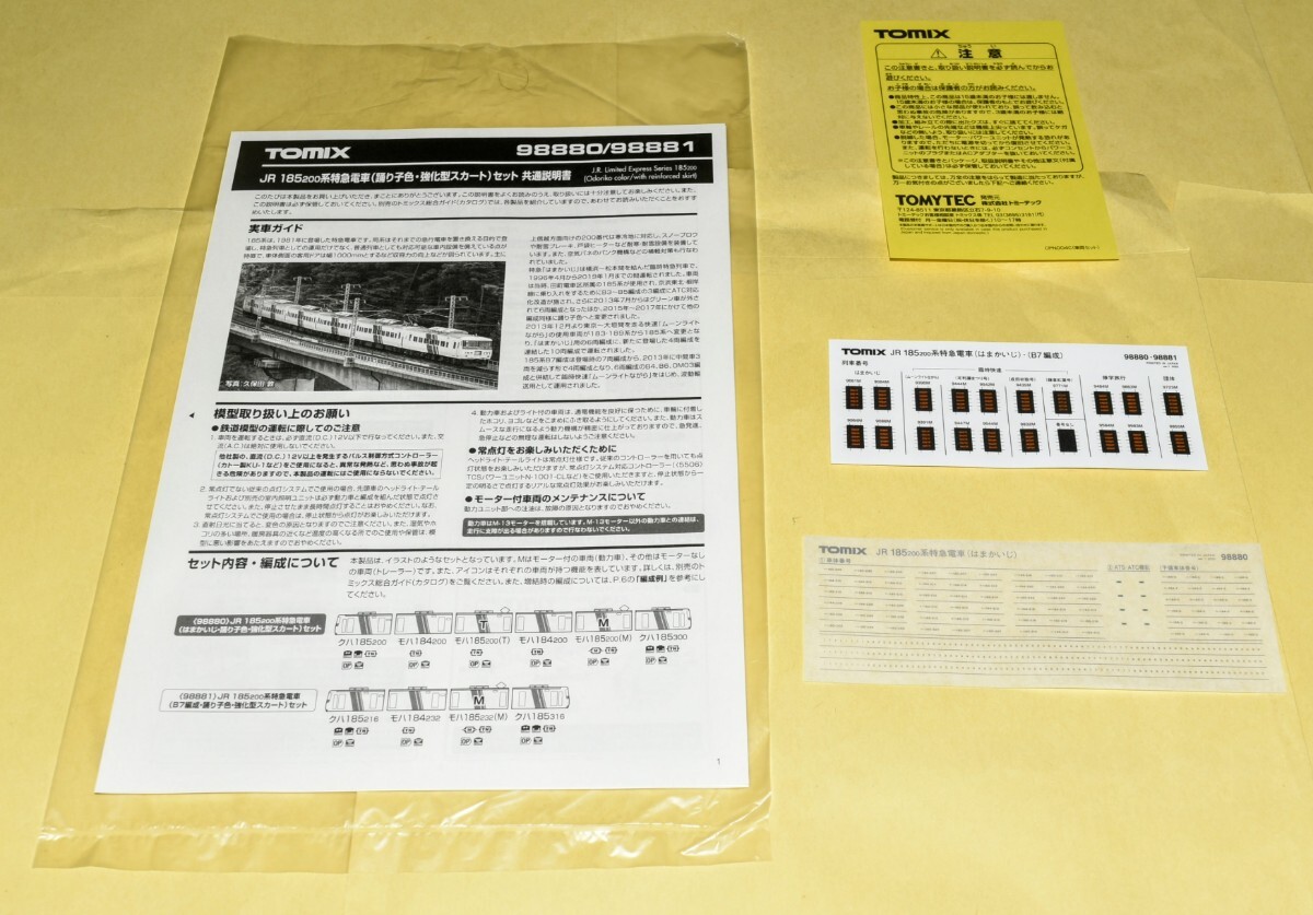 型番(98880) 185系 200番台 はまかいじ・踊り子色・強化型スカート)セットより 【クハ185-200・クハ182-300(各種パーツ・インレタシール・説明書付)~】