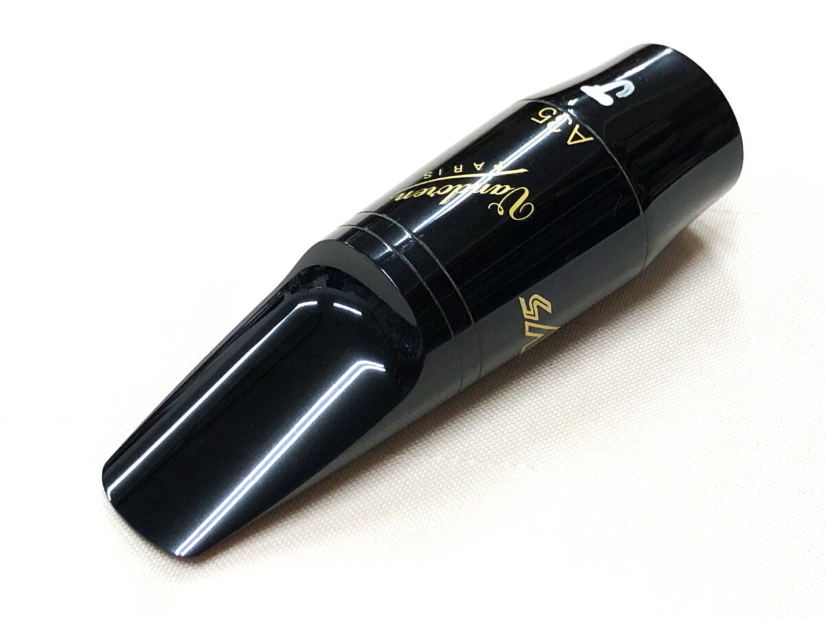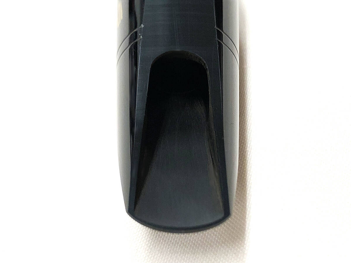 バッフルが平らで、小さく丸いボアが特徴です。開きが広く、クラシックでもジャズやポピュラー音楽でも活躍できるマウスピースです。