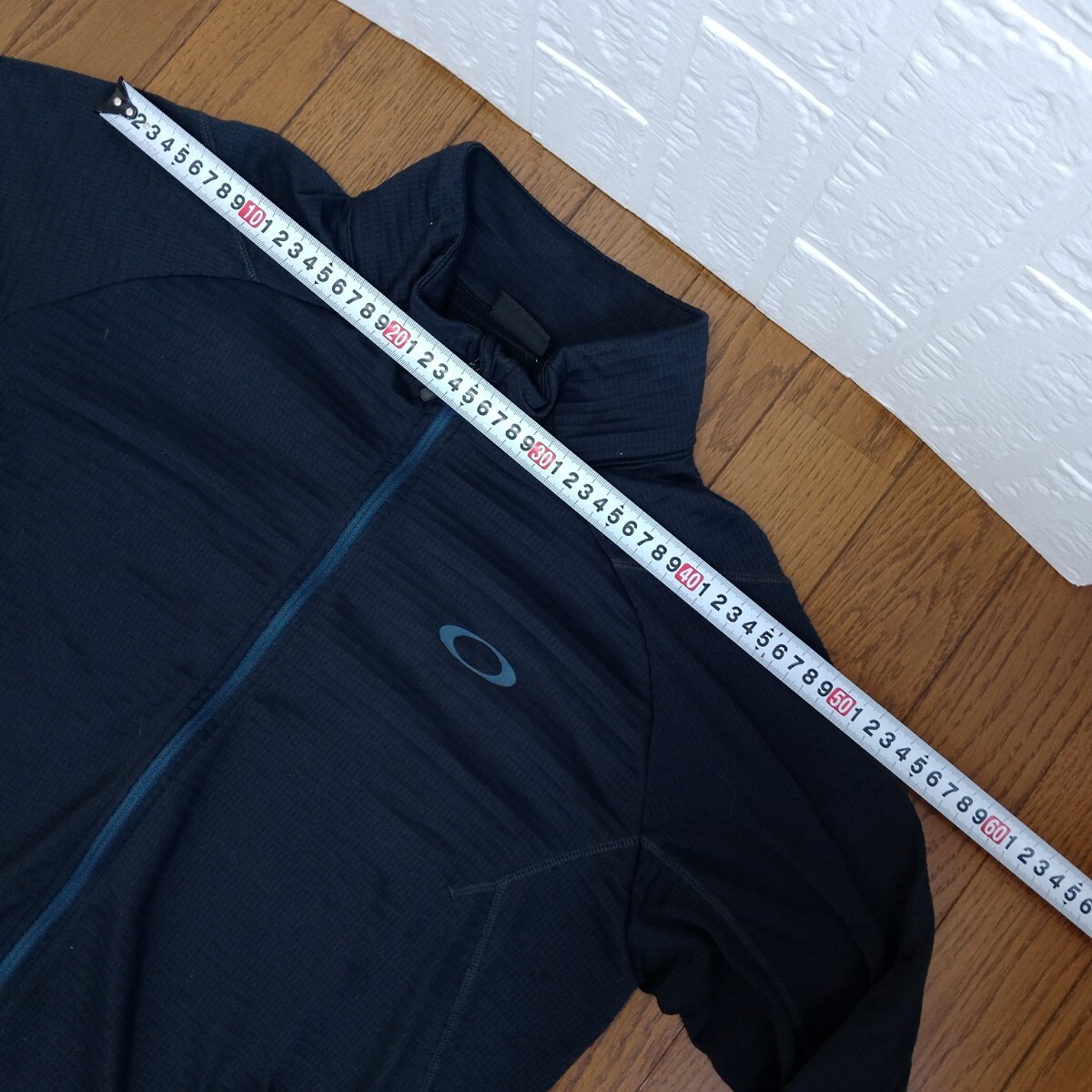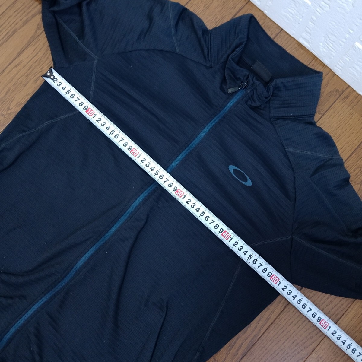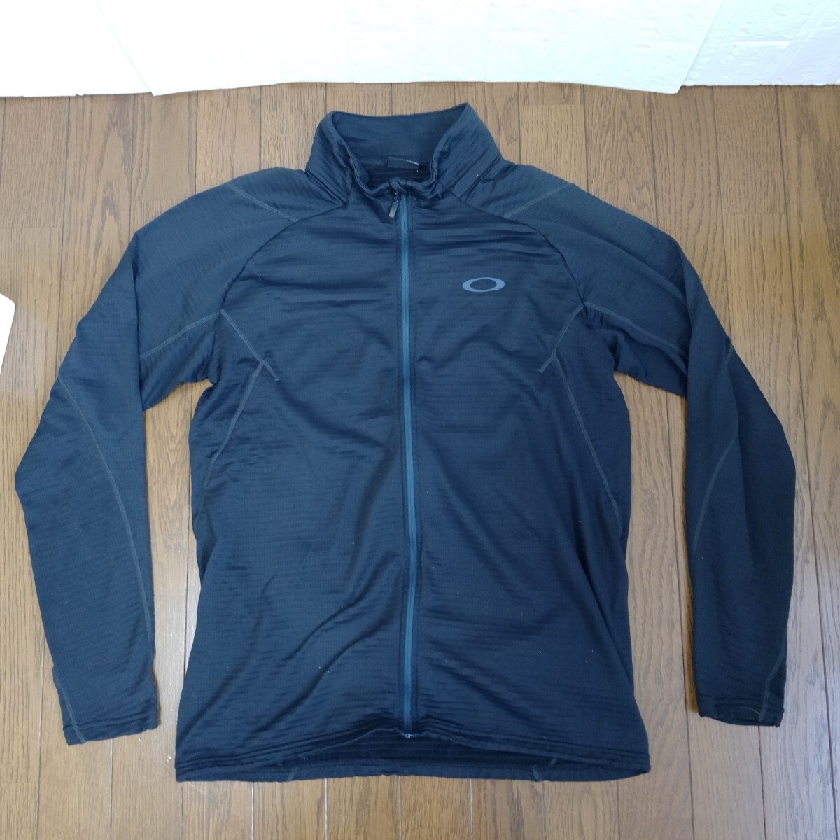 黒のOAKLEYフルジップジャケット、Mサイズ、快適な着心地。