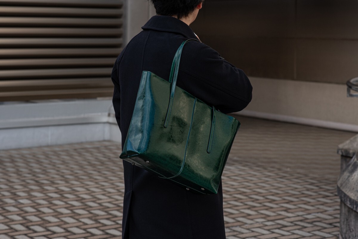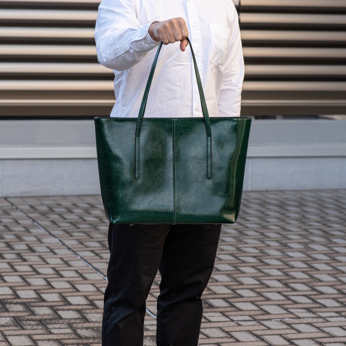 ビリヤードグリーン【牛革】肩掛け 底鋲アリ 本革 送料無料 メンズ トートバッグ 鞄 カバン 新品 未使用 送料無料 1円 A4 緑 田中革具