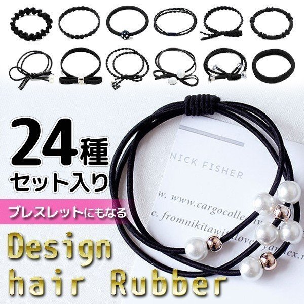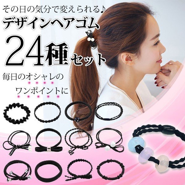 毎日のオシャレのワンポイントに♪ デザインヘアゴム 24種セット |