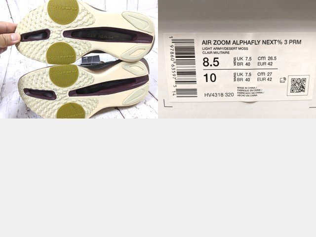 ランニングシューズ メーカー:NIKE モデル:アルファフライ 3 プレミアム 品番:HV4318-320 ライトアーミー/アイアンストーン/ライトカーキ/デザートモス サイズ:26.5㎝ 重さ(片方当たり):約195g -------------------- その他多数商品を出品中!! 出品商品一覧は→こちらをクリック -------------------- | ||||||||||||