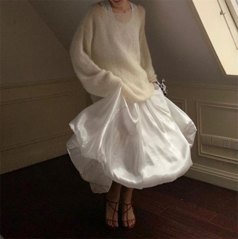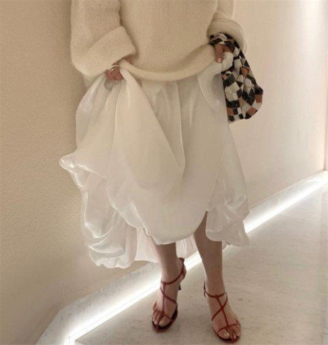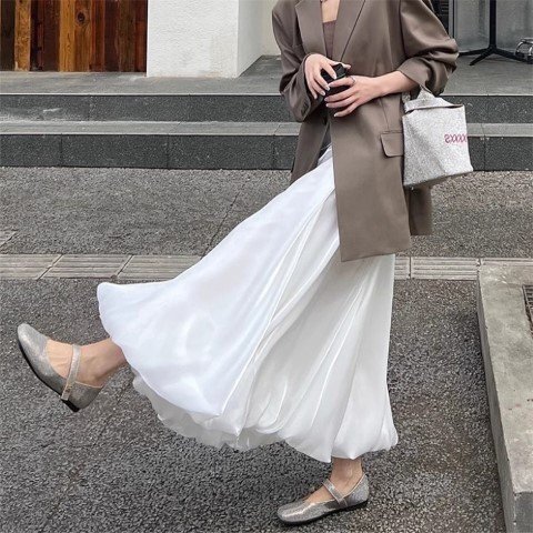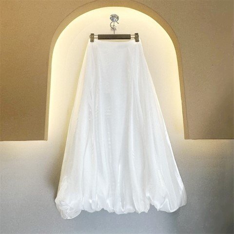 ロングスカート マキシ丈スカート ふんわり 清楚 お出かけ かわいい きれいめ XL ホワイト