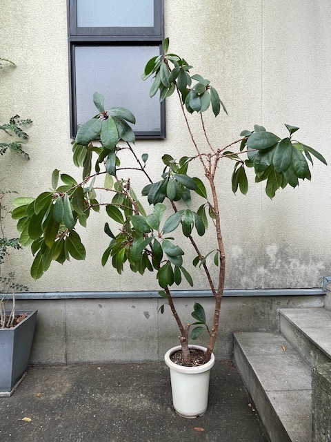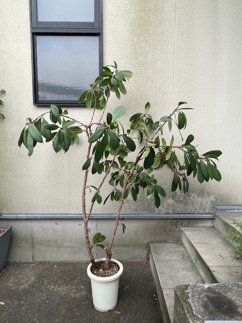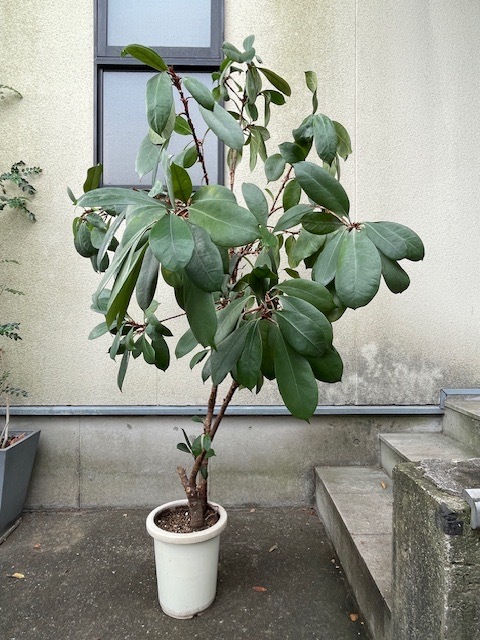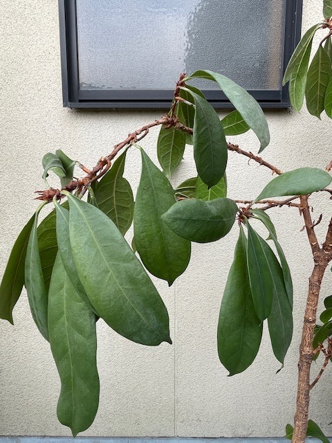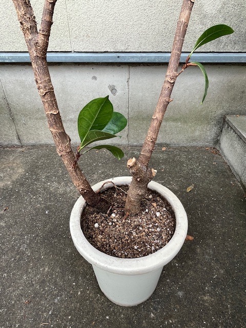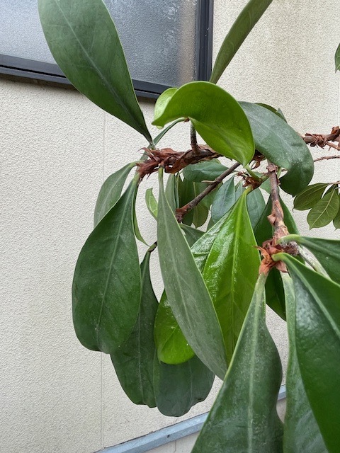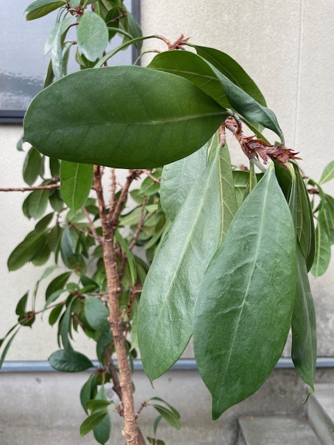 濃い緑の硬い葉を付けています。新しい葉も出てきています。(写真参照)