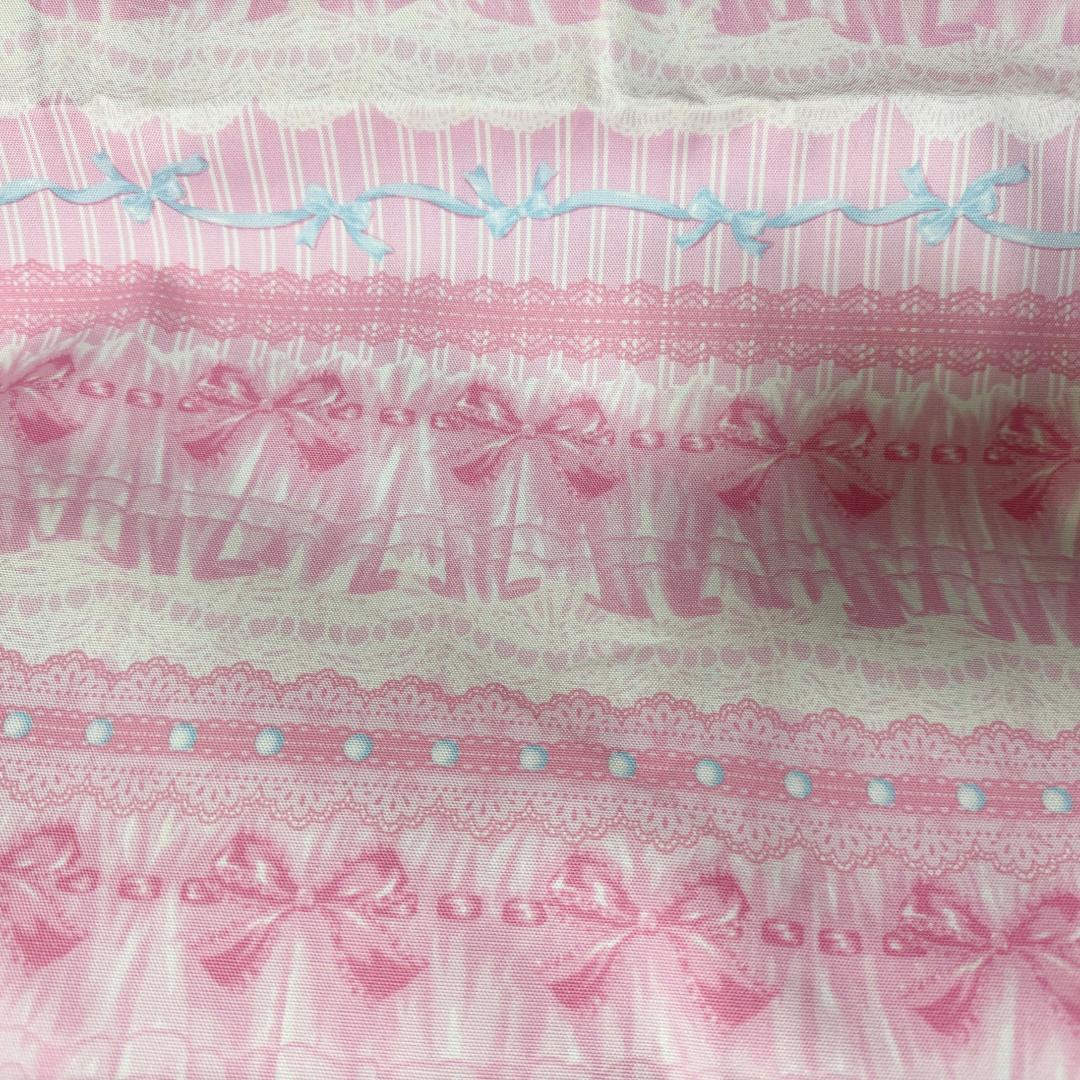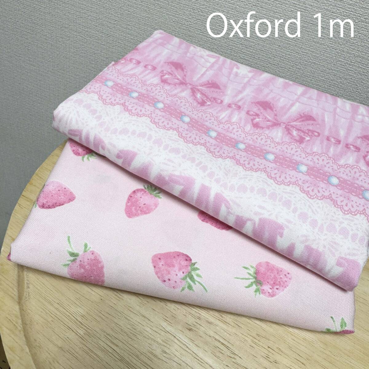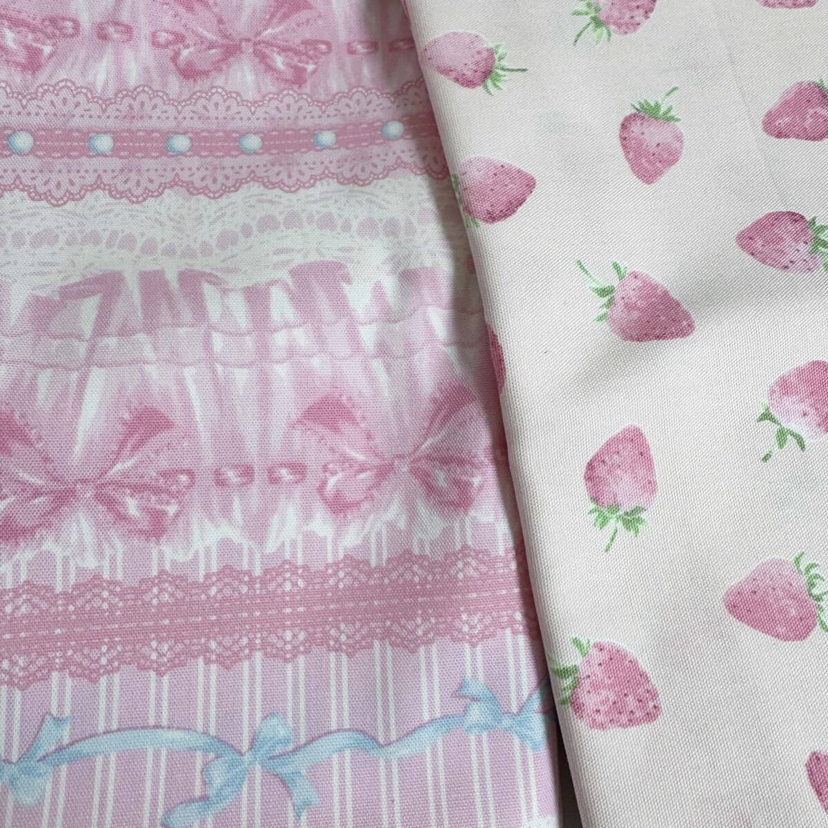 いちご×レースリボン★ピンク系かわいい綿オックス生地2枚セット各1m★女の子向け布はぎれ
