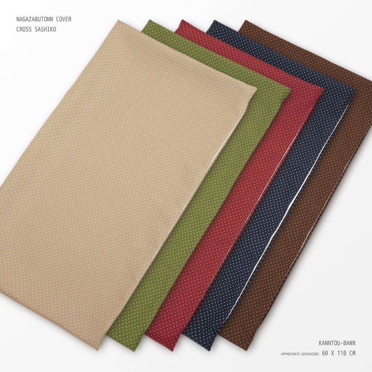 和室に良く合う生地の長座布団カバーです。長辺にファスナーがついており、脱着が容易です。