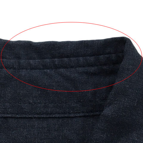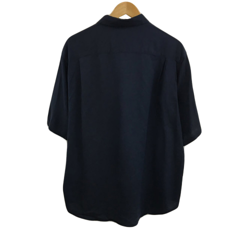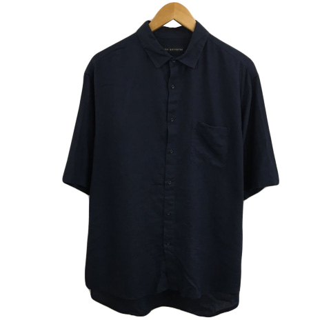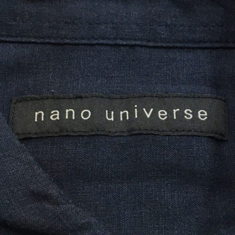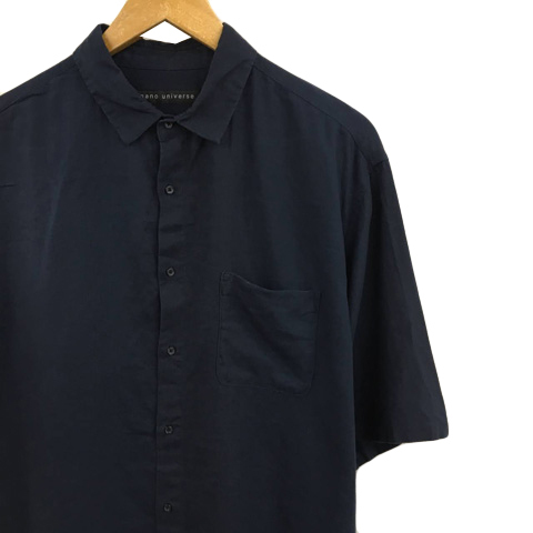 ナノユニバース nano universe シャツ カジュアル スタンダード 無地 リネン 五分袖 L 紺 ネイビー メンズ