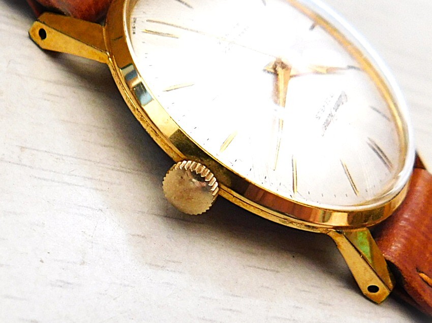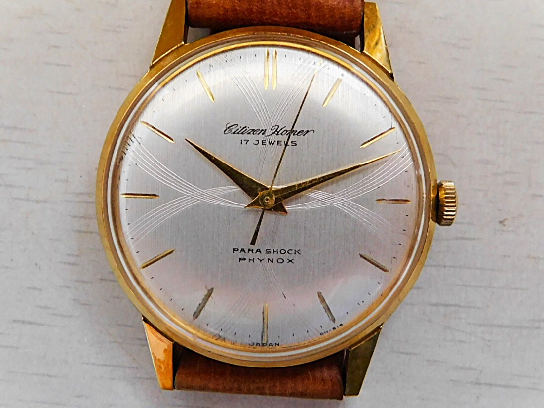地方の古い時計店の在庫品です、映像の様なホーマー5本線カーブライン入り文字盤タグ付きのデット品との説明で平置き6時間程大体合って動きフルオリジナルの目立つダメージはない様ですが多少スレ汚れや革ベルトなど古い保管品とご理解の上、映像より利用できる方お願いします。