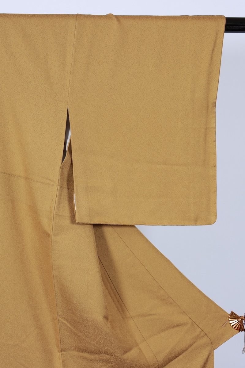 オシャレな茶系の色に菊の地紋通しに染め上げた素敵なお品をオシャレに色合わせしてお出かけください。