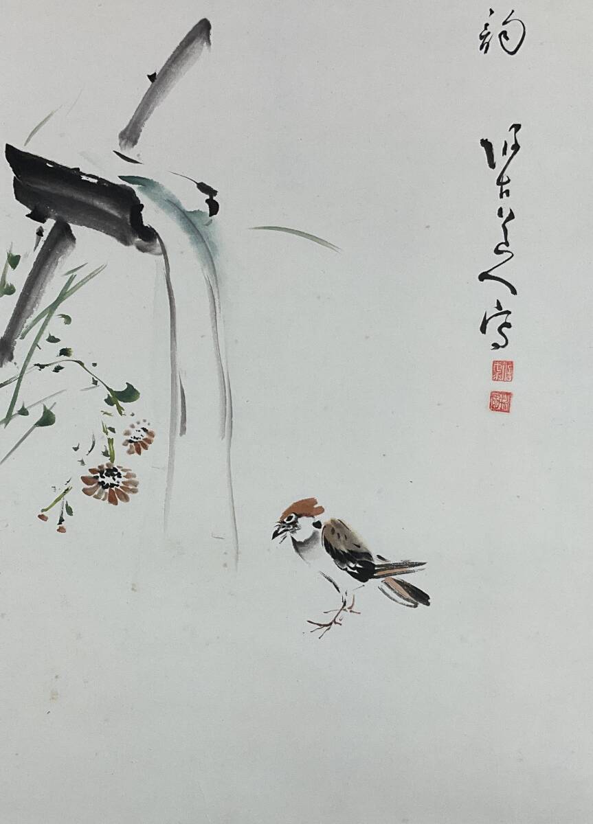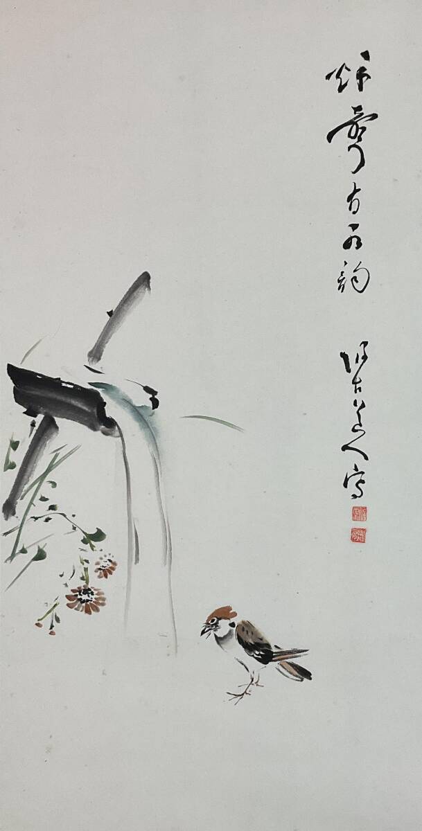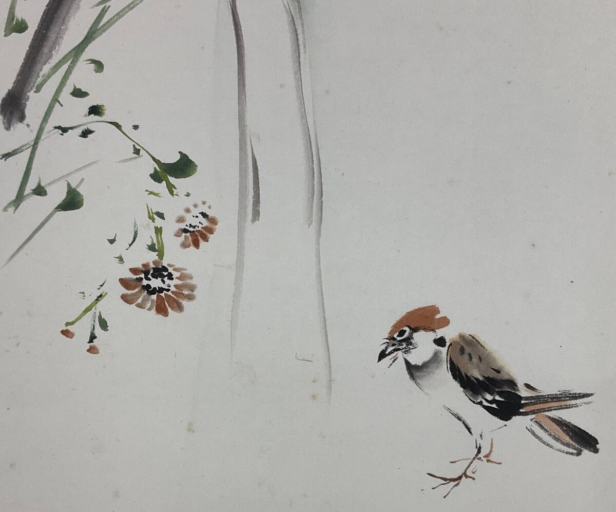 【真作】《掛軸》東桃園 信海 筧雀図 箱有 俳人 南画家 山口