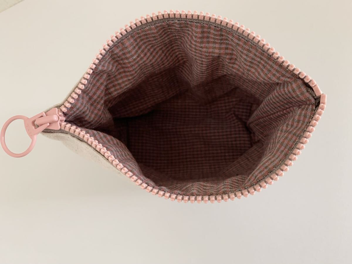 裏地はブラウンとピンクのチェック柄のコットンリネンです。