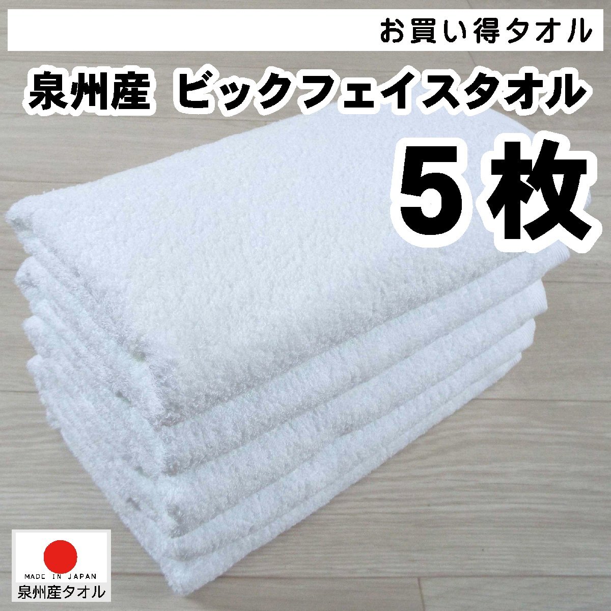新品 泉州産 ビックフェイスタオル(スポーツタオル)白 5枚