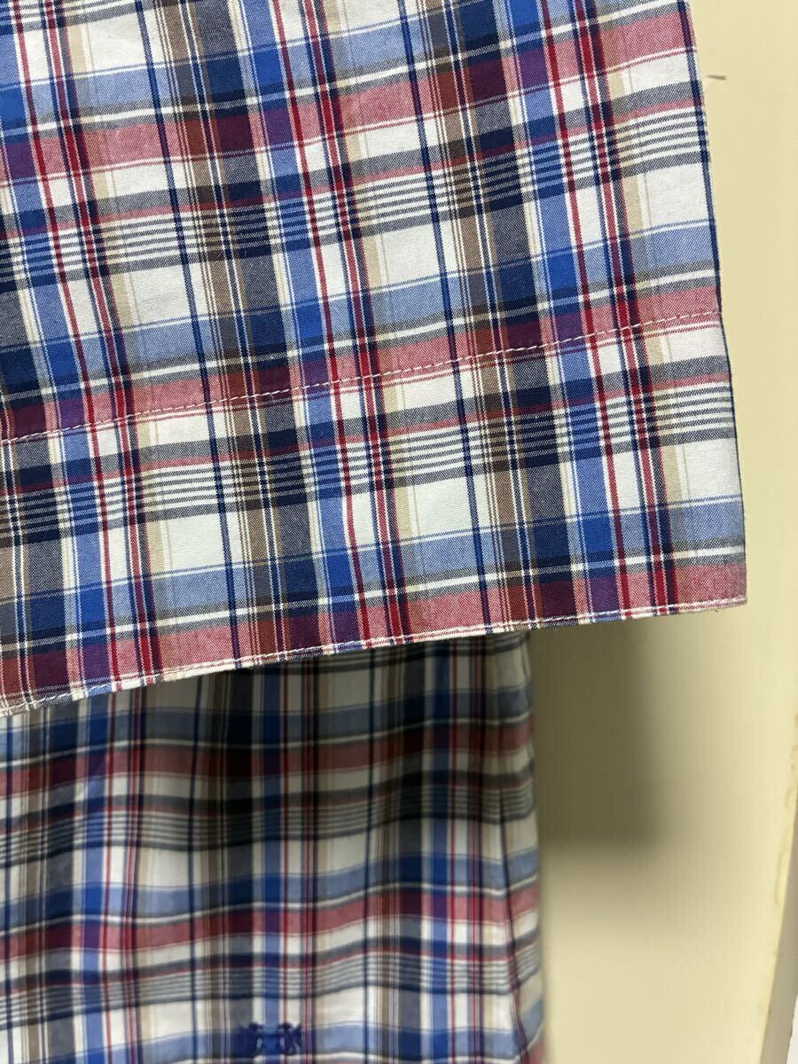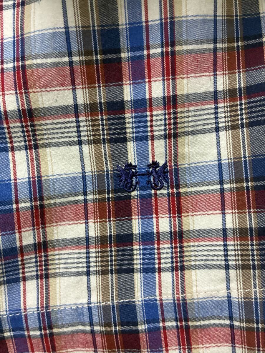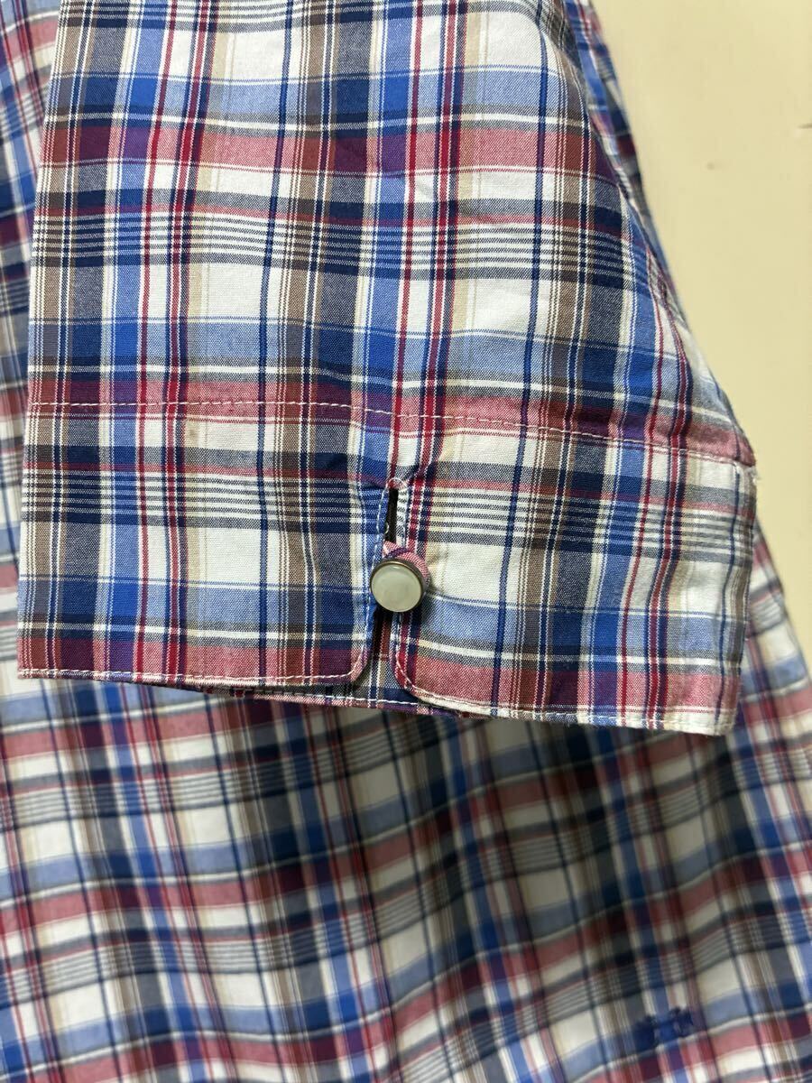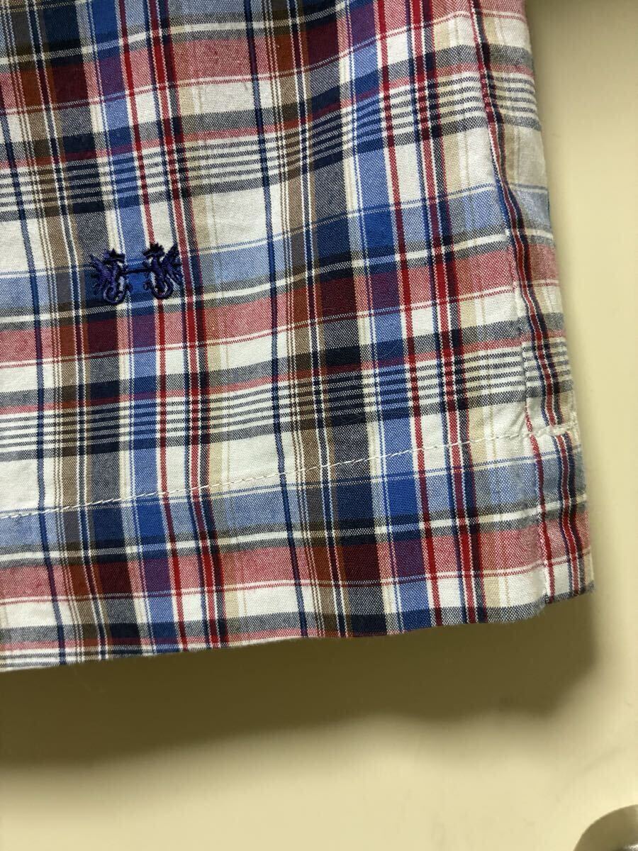 ★MC.GREGOR★お洒落な色合いのチェック柄でコットン100%のチュニック丈ブラウスになります。レッド×ブルー×ホワイト×ライトブラウン系のお洒落チェック柄で前中心はスリット入り1ボタンになっています。お袖も揺ったりとしていて袖口はスリット入り1ボタンになっています。とてもシンプルながらお洒落な一枚に仕上がっています。