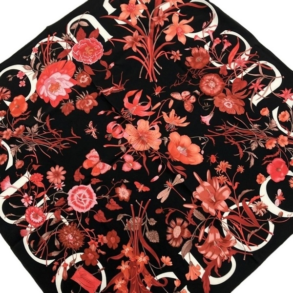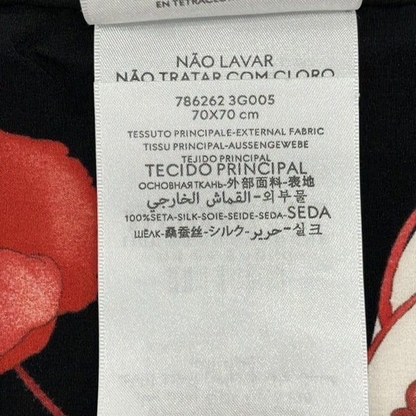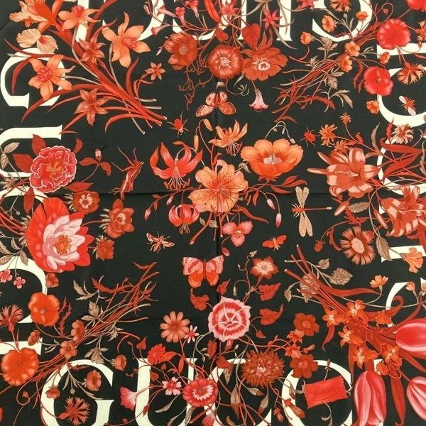 グッチ GUCCI 786262 - シルク 黒×レッド×白 花柄(フラワー)/蝶(バタフライ)/ロゴ スカーフ