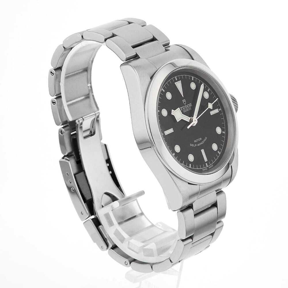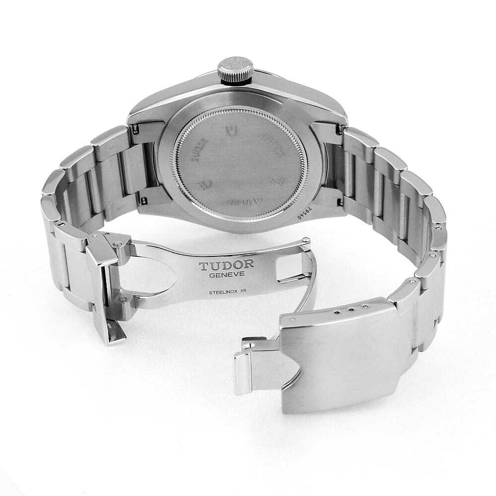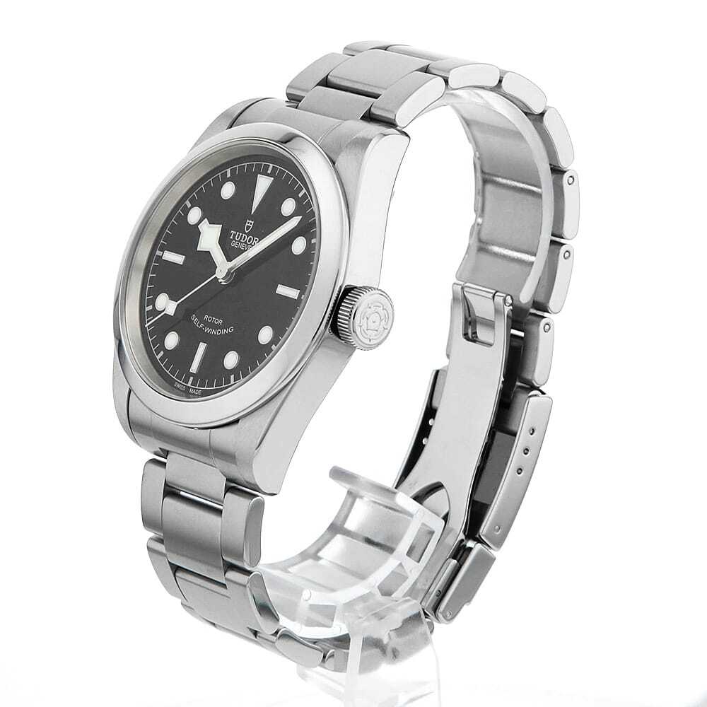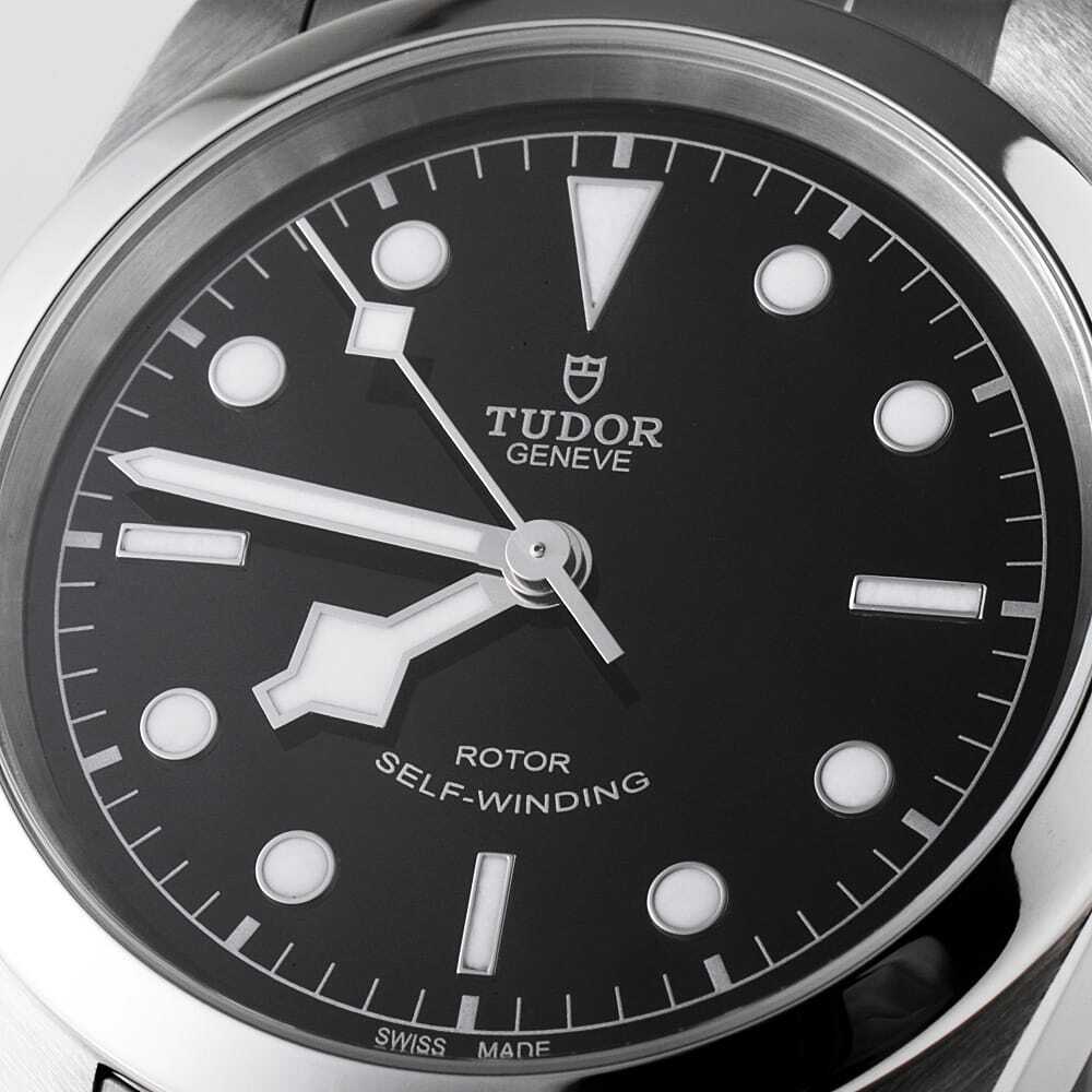 モデル情報 | 人気モデルヘリテージ ブラックベイの2017年発表モデルが入荷。ステンレスベゼルとブルーダイヤルのコントラストが美しいシンプルな一本です。ケース径は41mm。ダイヤルのロゴ付近には盾マーク、リューズの刻印には「チューダーローズ」のマークが採用されています。パワーリザーブ38時間、150メートル防水。 |