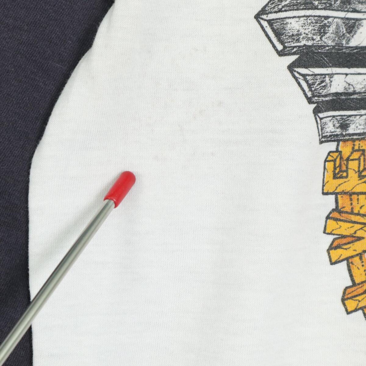 | 【商品管理番号】 A4413 【サイズ】 L相当 【実寸サイズ】 着丈:約65cm 身幅:約48.5cm 裄丈:約64cm 【主な素材】 表地 : コットン 【色】 ホワイト 【仕様】 80年代 ラグランスリーブ ヴィンテージ VAN HALEN ヴァンヘイレン 【状態】 特記事項: 後ろ裾に小さな穴、全体的に薄い汚れがございます。着用に問題はございません。 | |||