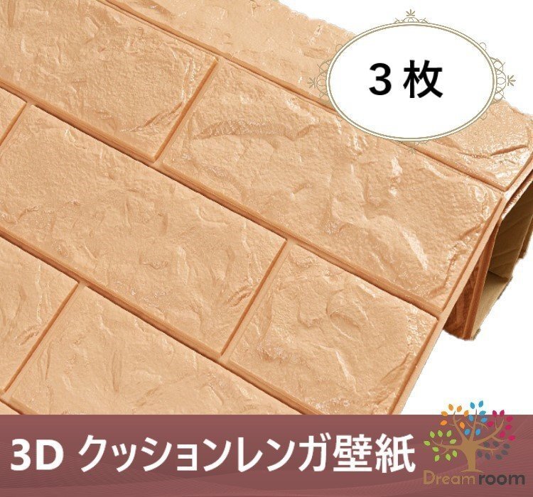 【3枚】高品質 3D クッション 壁紙シール ベージュ レンガ調 糊付き はがせる クロス 70×77cm アンティーク 耐水 抗菌 落書き 傷防止