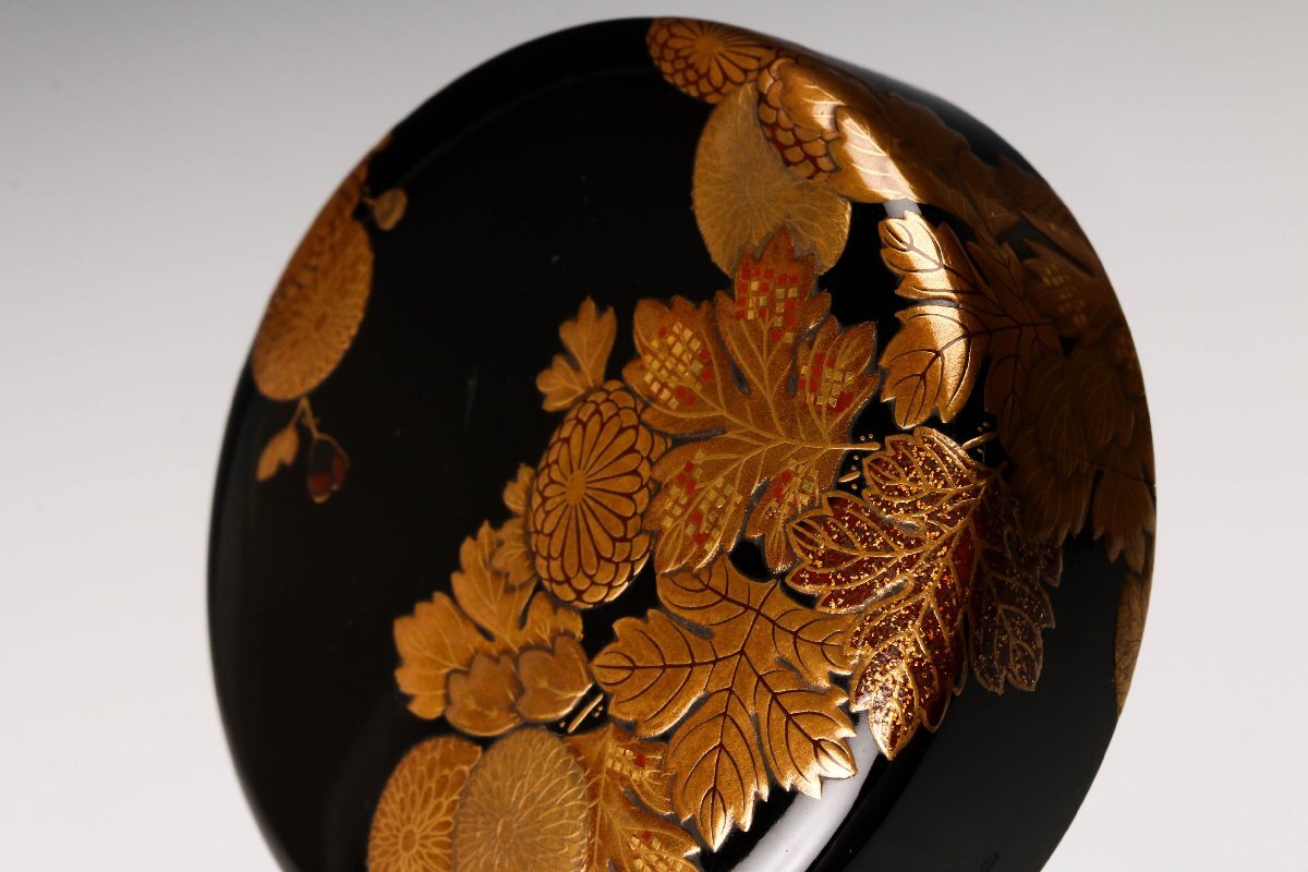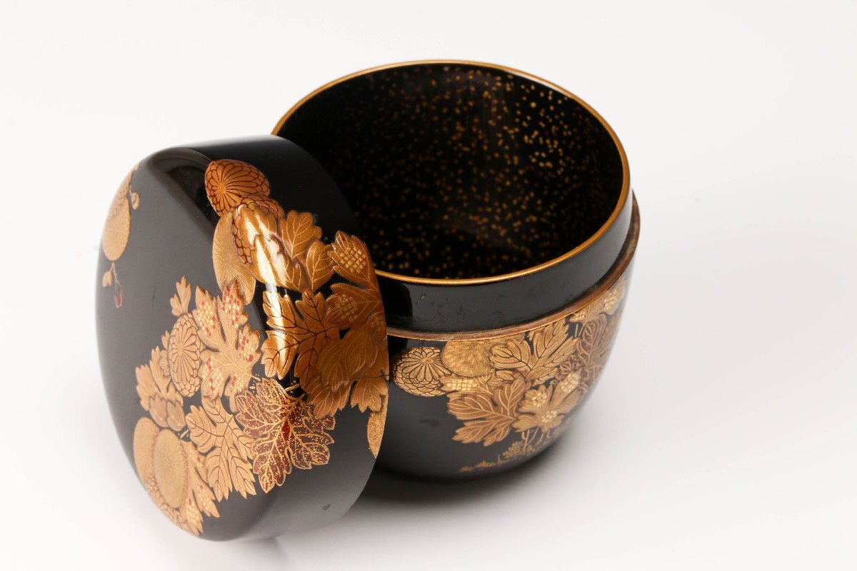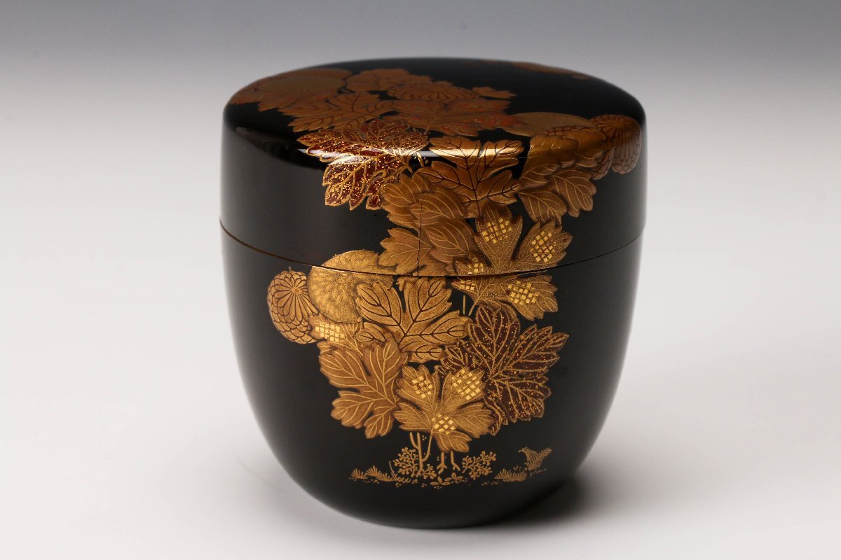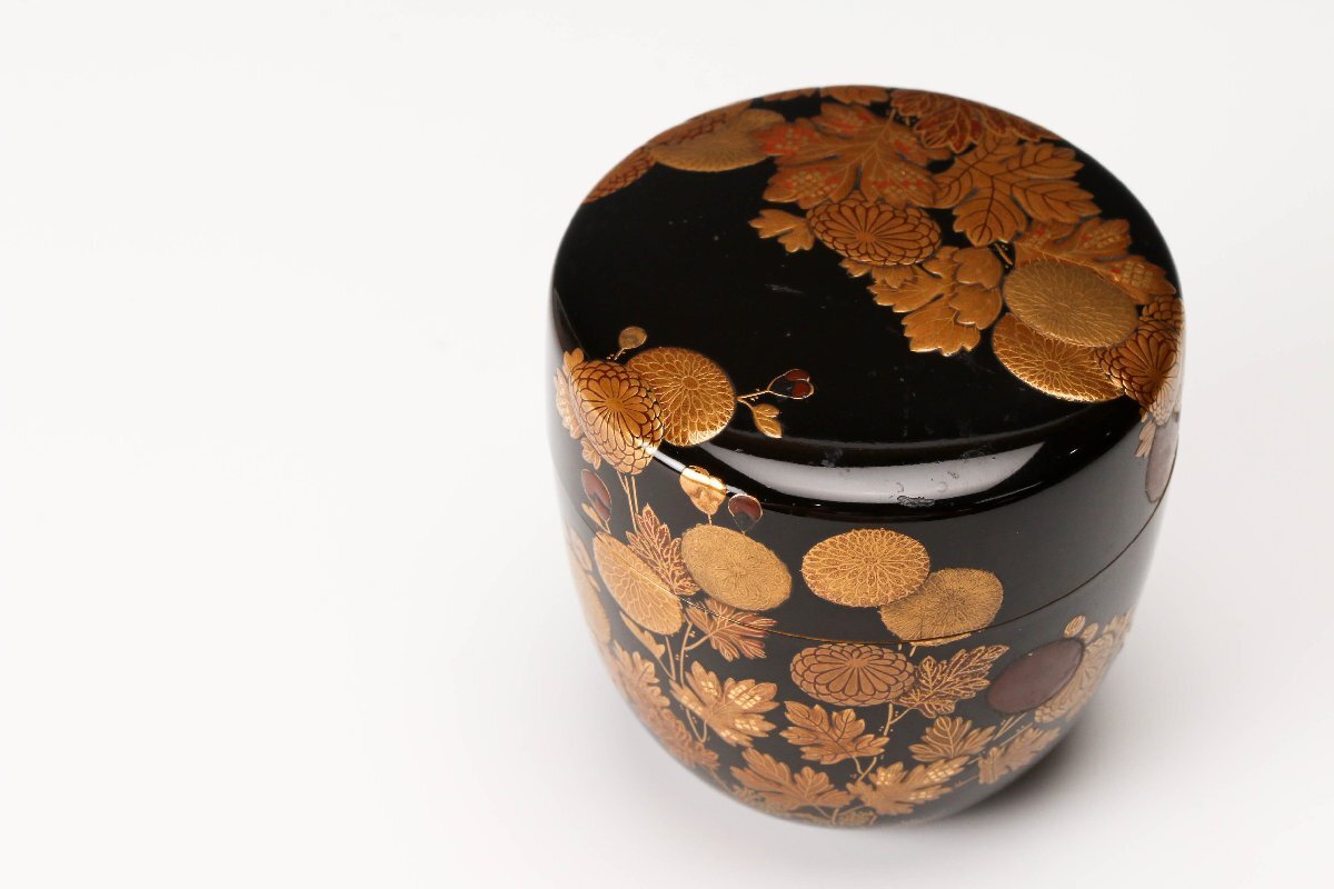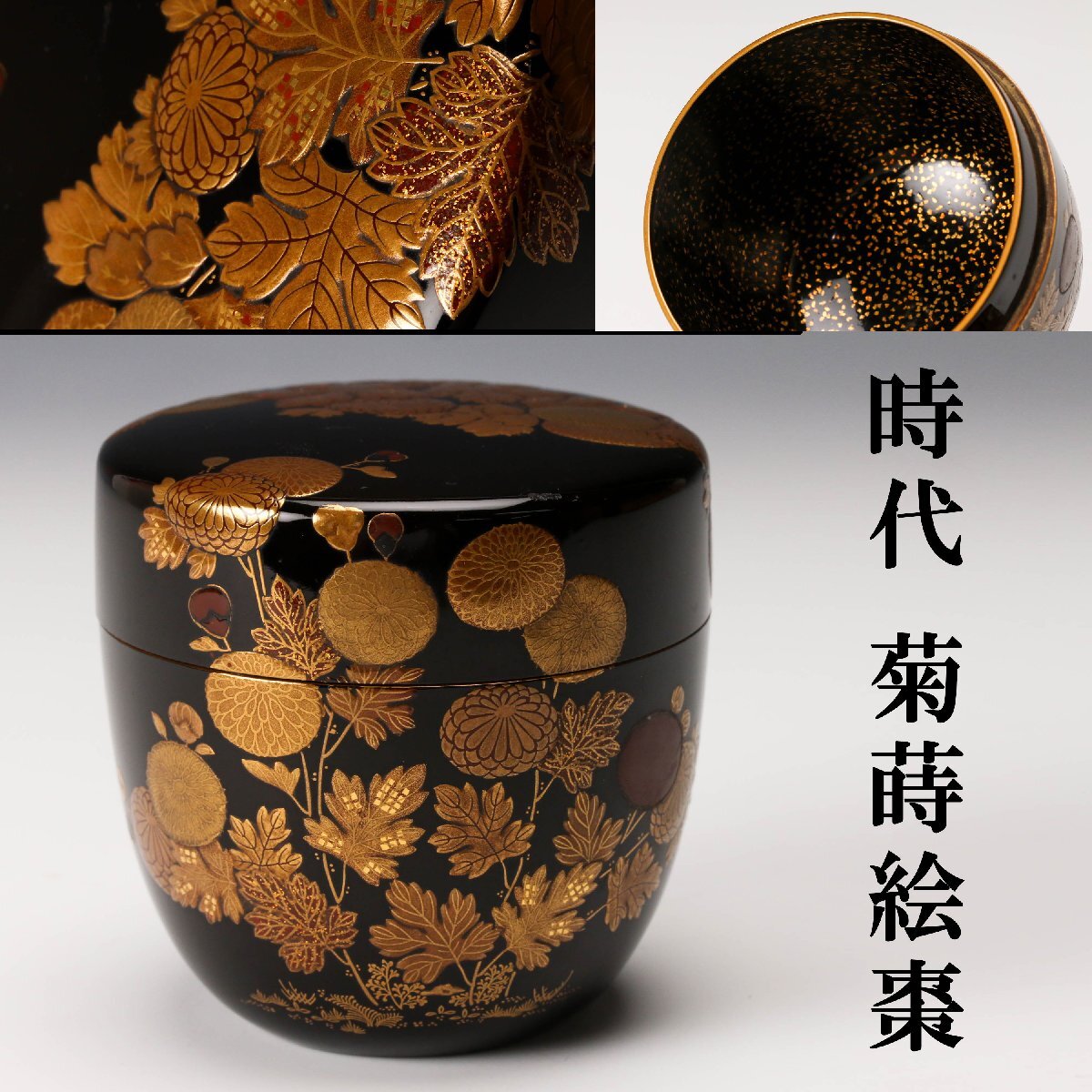 【佳香】時代 菊蒔絵棗 時代箱 茶道具
