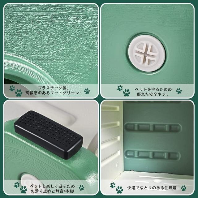 【お手入れ簡単】表面が滑らかで、汚れが残りにくいので、お手入れが簡単です。ペット小屋が汚れた場合は、小屋全体を水で洗い流し、水分を拭き取り、そのまま乾燥させることができます。 ペットハウスを清潔に保つために、定期的に掃除することをおすすめします。