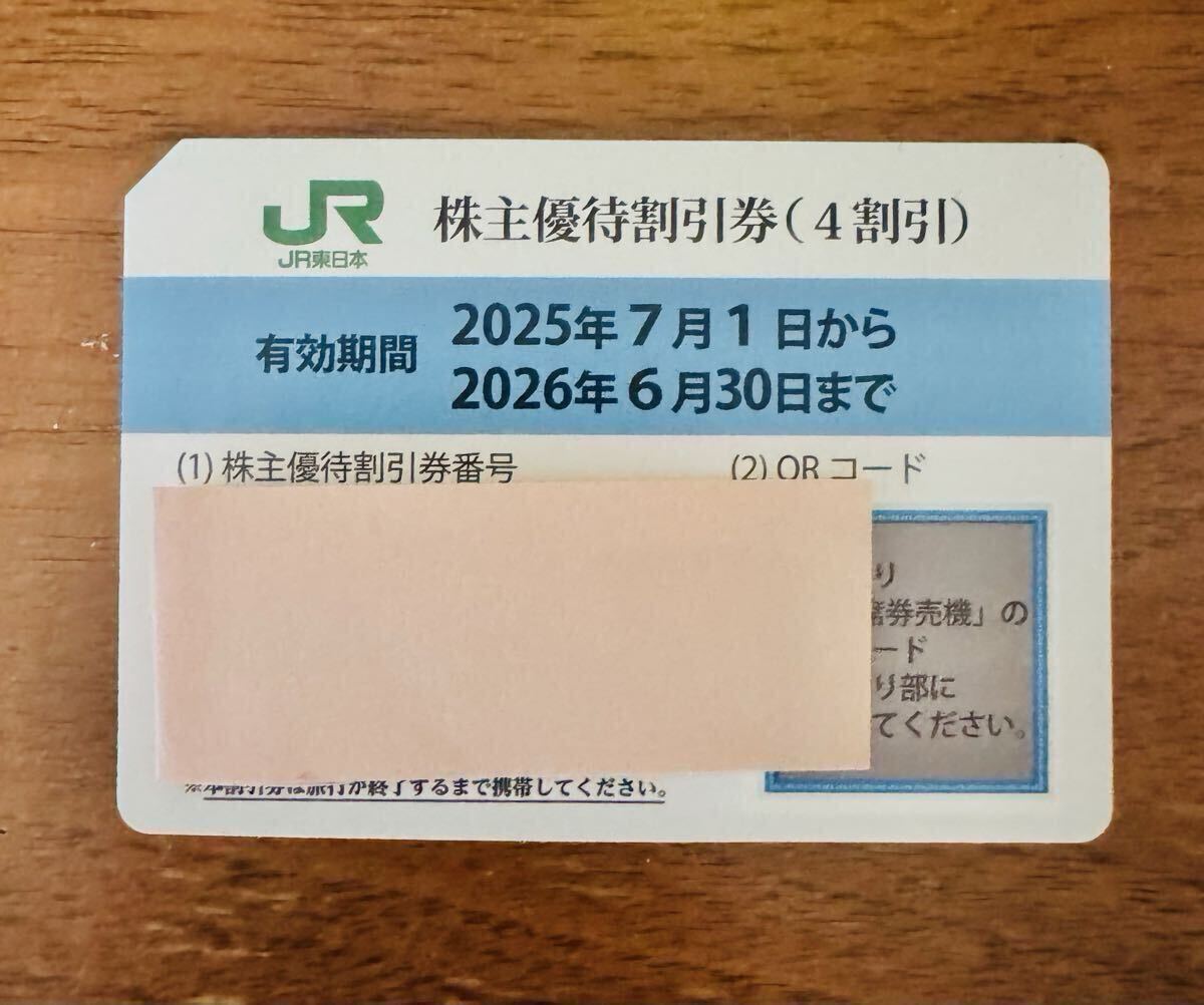2026/6/30有効期限のJR東日本株主優待割引券です。