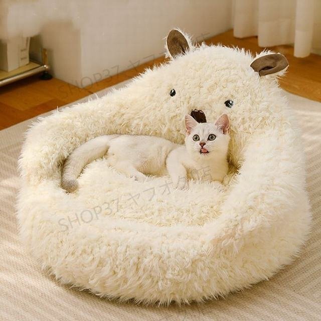 安心な素材を使用しております。柔らかい生地のフチは空間を暖かくし、ペットが頭を乗せられる快適なヘッドレストとしても機能します。柔らかい生地で空間を暖かくし、手足が伸ばしやすく,もっちりとした感触の柔らかベッドがネコと犬の体をやさしく包まれ、ふんわり支えます。