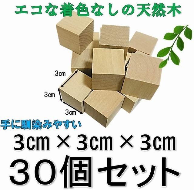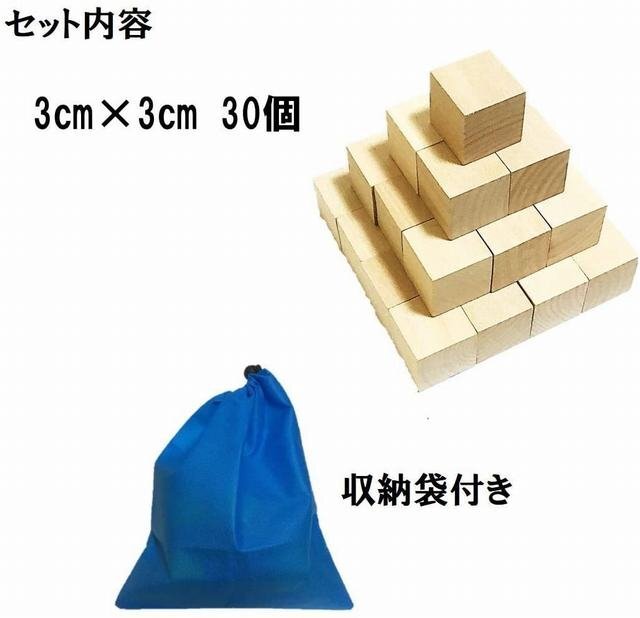 木製 ブロック 30個セット 知育 玩具 積み木 立方体 おもちゃ (原木 3㎝×3㎝)