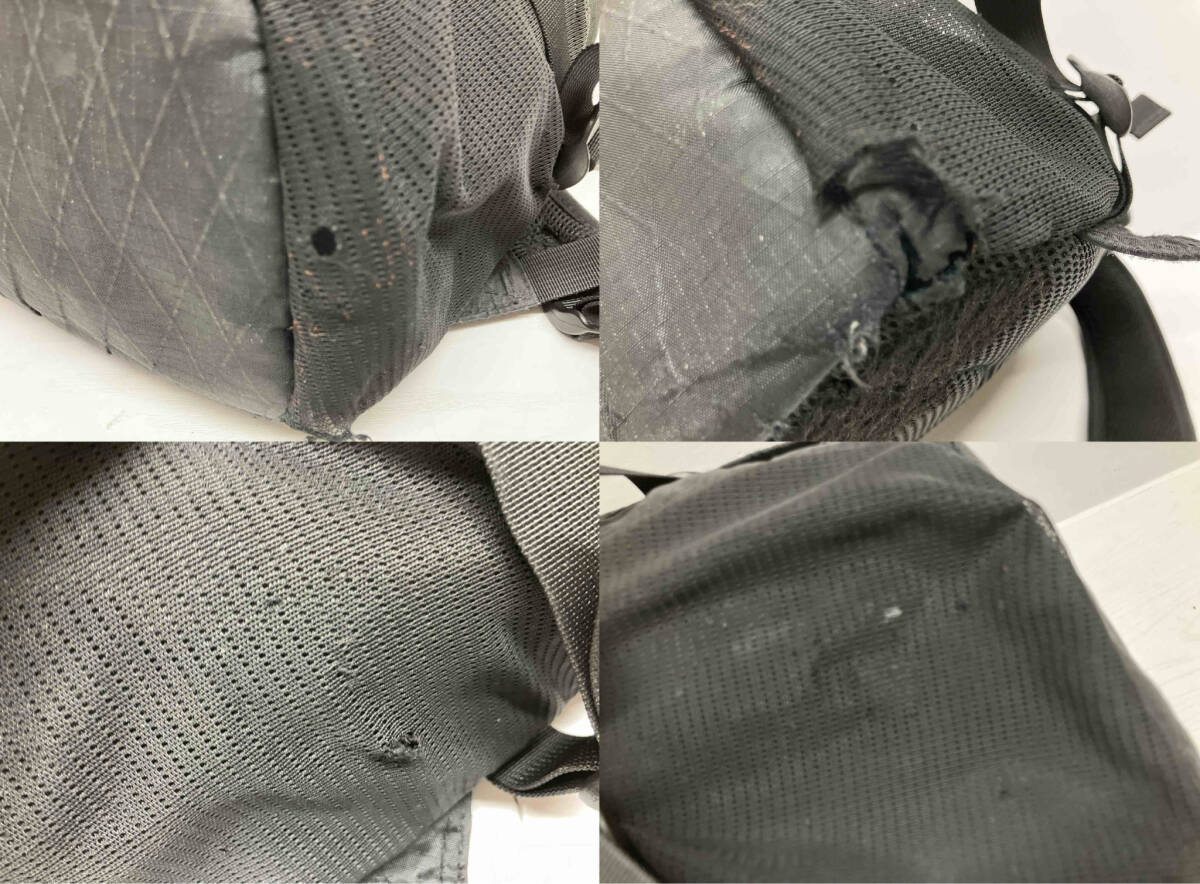 商品は画像のものが全てです。 汚れ有り。 ファスナー金属部分に塗装剥げ有り。 メッシュポケットの部分に数箇所破れ有り。 背面下部に毛羽立ち有り。 縦幅:約47cm 横幅:約30cm 奥行き:約19cm |