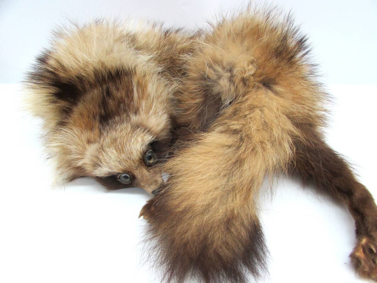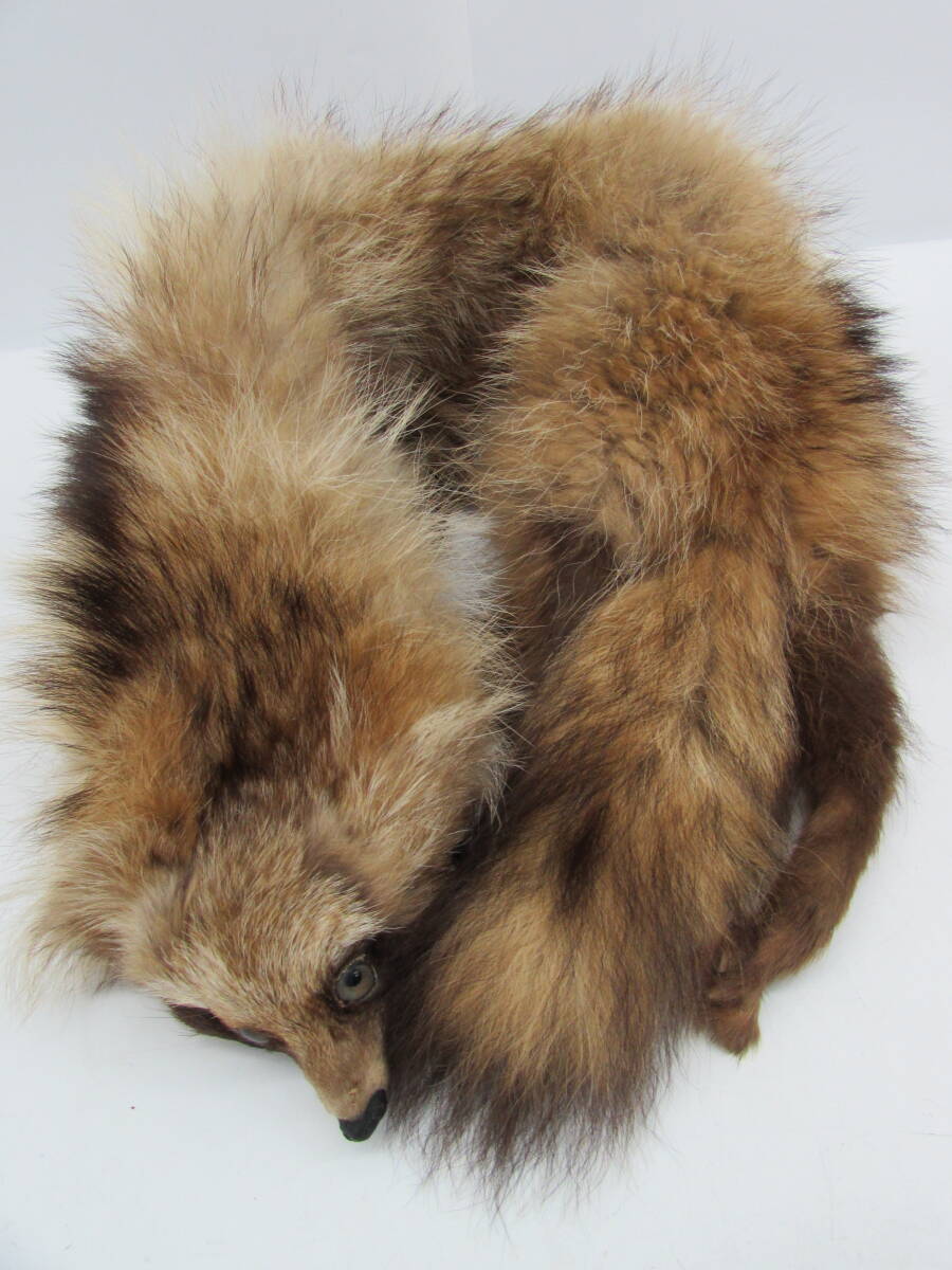 たぬき 狸 タヌキ ラクーンドッグ ティペット マフラー 毛皮 ストール ショール 襟巻き リアルファー 顔・足・尻尾付き |