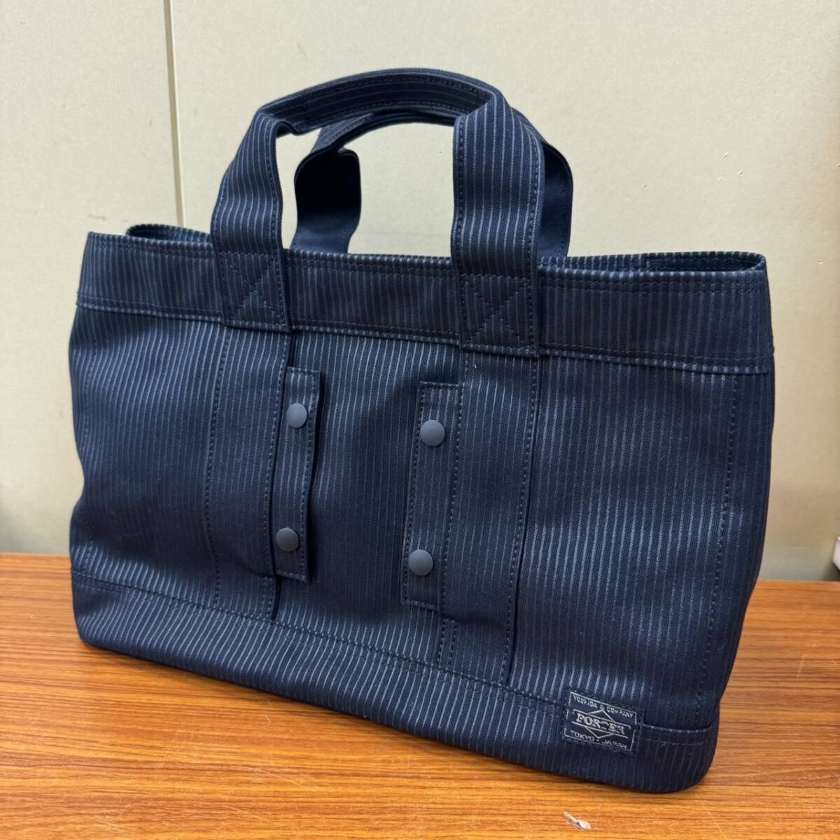 PORTER ポーター DRAWING ドローイング トートバッグ 帆布 ブラック ストライプ 中古 メンズ バッグ 廃盤 完売品