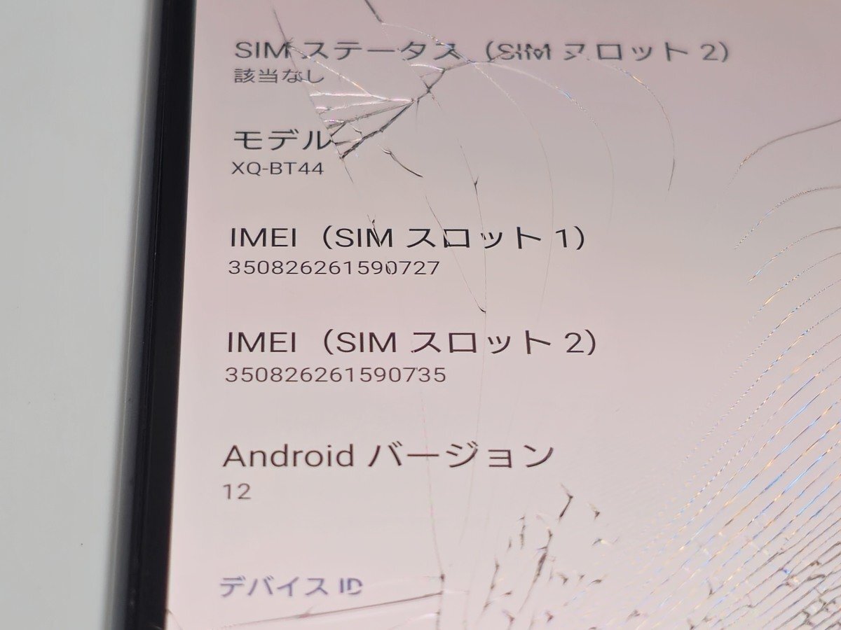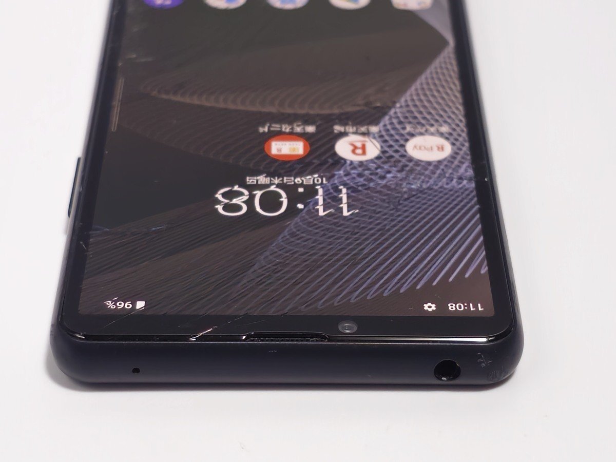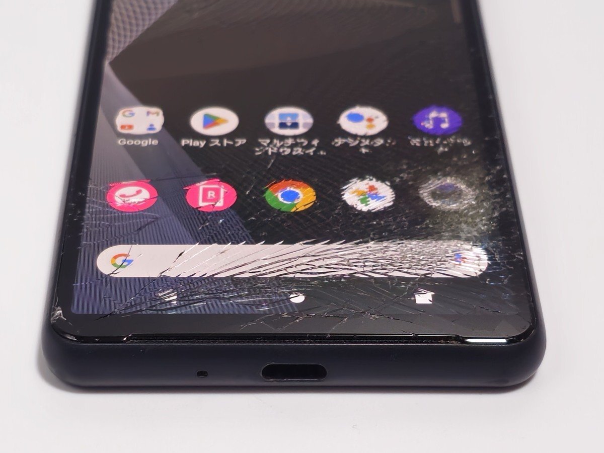 【外装状態】: J 液晶面は割れています。打痕や傷があります。背面は傷が少しあります。液晶にヤケがあります。背景が白いと分かります。