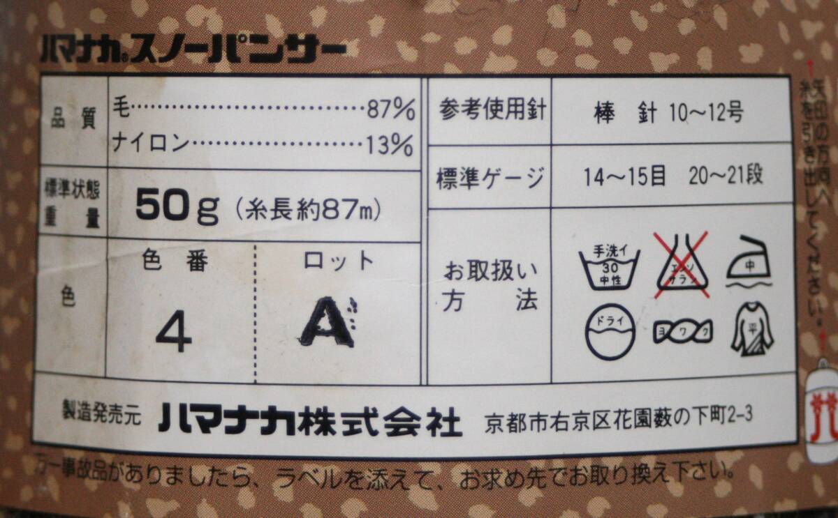 ★毛糸 ハマナカ スノーパンサー 50g 糸長87m 8玉 毛87%・ナイロン13% 色番4 経年保管品 現状品★