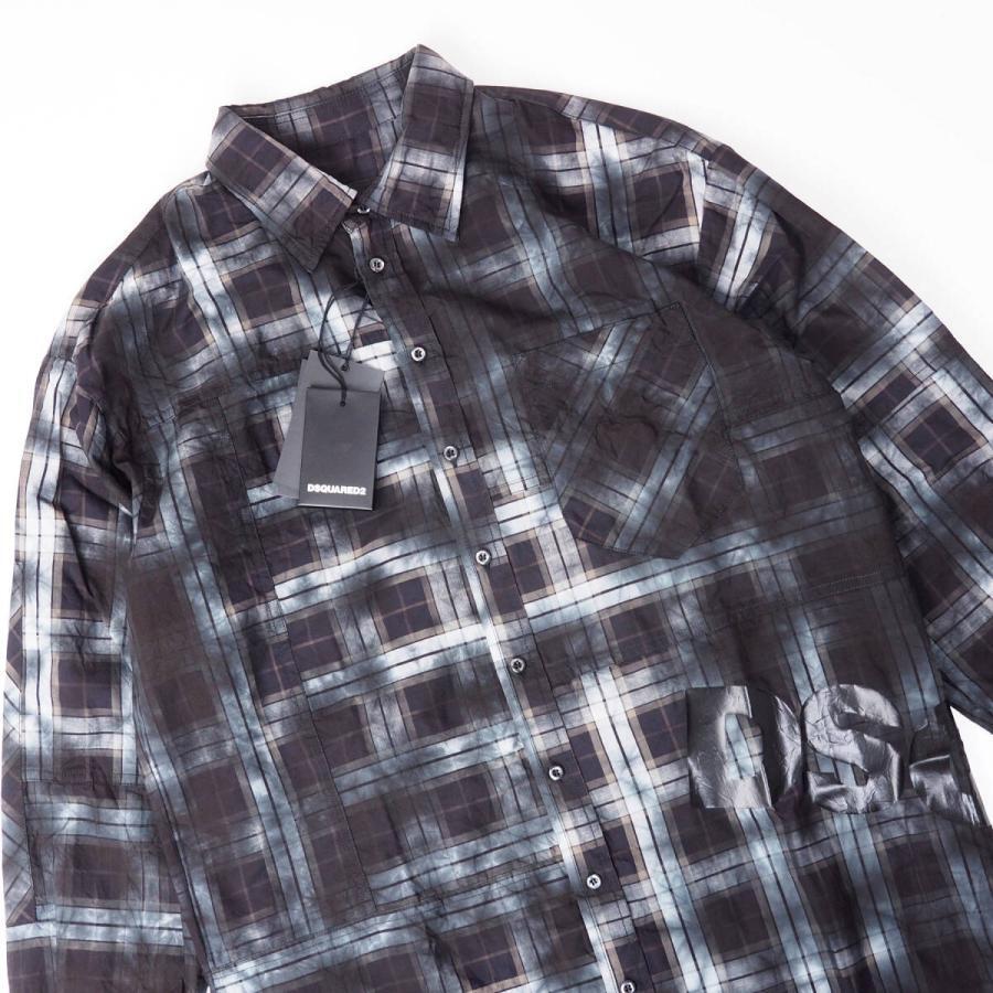 新品正規品 DSQUARED2 ディースクエアード S74DM0718 ダーティーチェック ドロップショルダー ロゴ シャツ 46