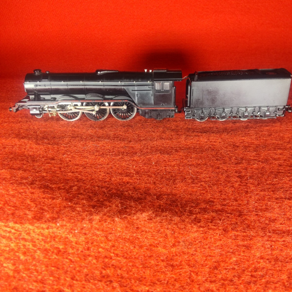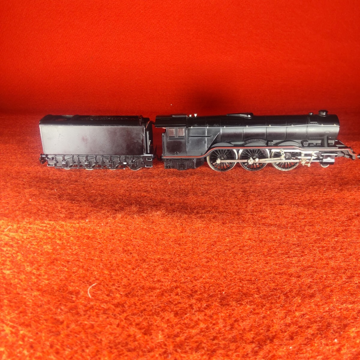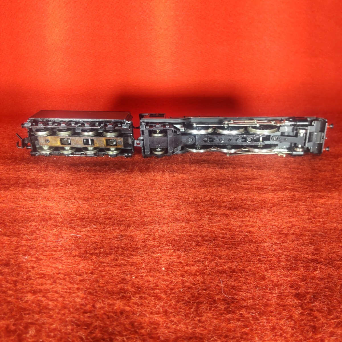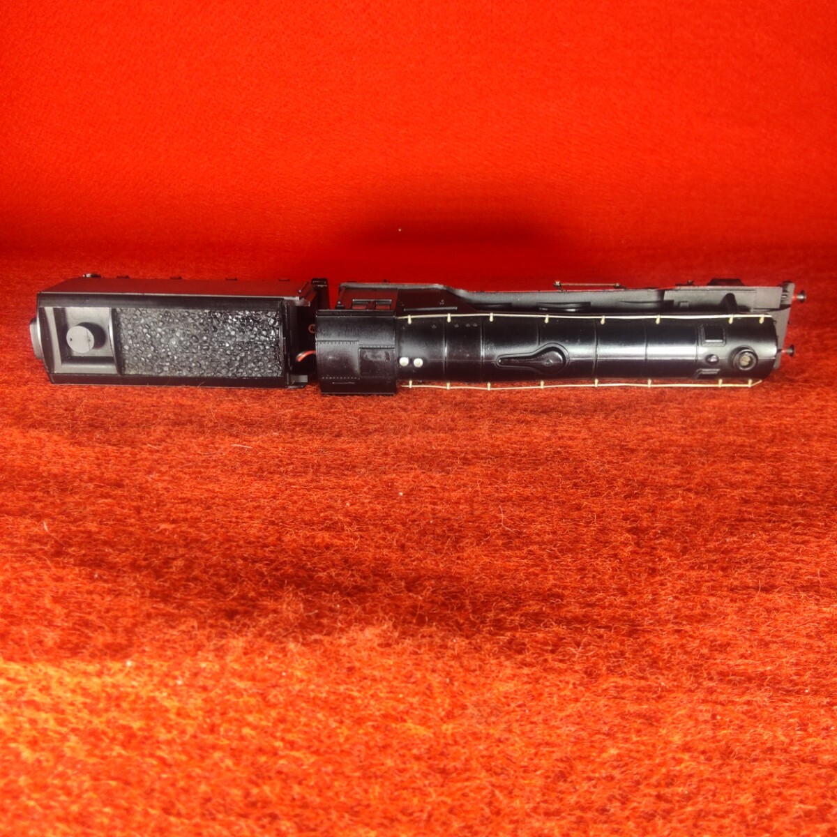 プラスチック製、R610の楕円型線路で動作確認済み、最後の写真です。但しギクシャクします。フロントライト点灯確認済み、先台車が原因でショートするので他車種の物に交換し上げて固定しました。テンダー駆動で分離は出来ません。付属品は無しで本体のみに成ります。ジャンクです。
