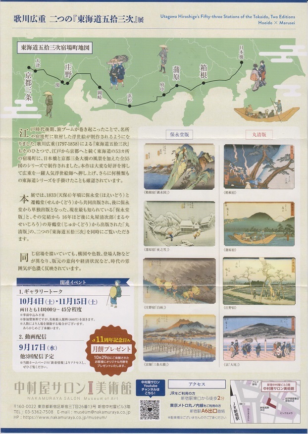 新宿中村屋サロン美術館中村屋サロン 歌川広重二つの『東海道五十三次』展 保永堂版×丸清版(2025年9月17日~12月7日)ペア招待券(送込)