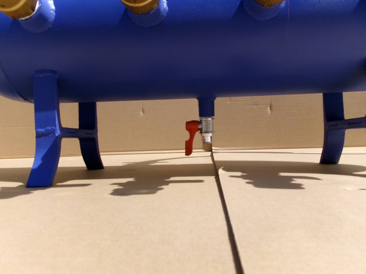 タンク内部に溜まった水は下部のバルブより排出されます。