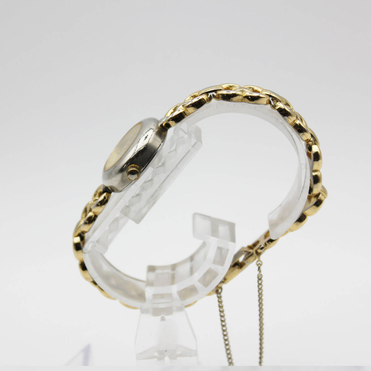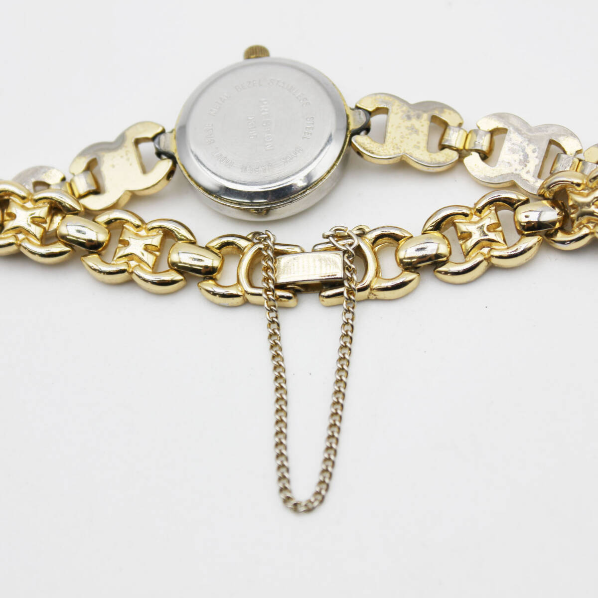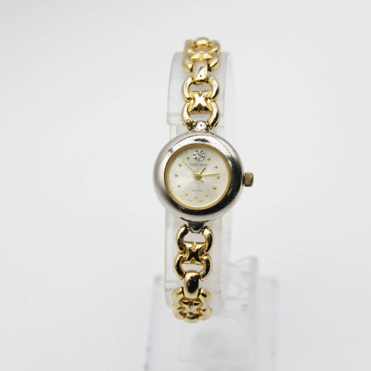 W251009-48 PRESTON プレストン Q3195 レディース腕時計 クォーツ ジャンク 文字盤ゴールド 石付き ラウンド ブレスレットウォッチ