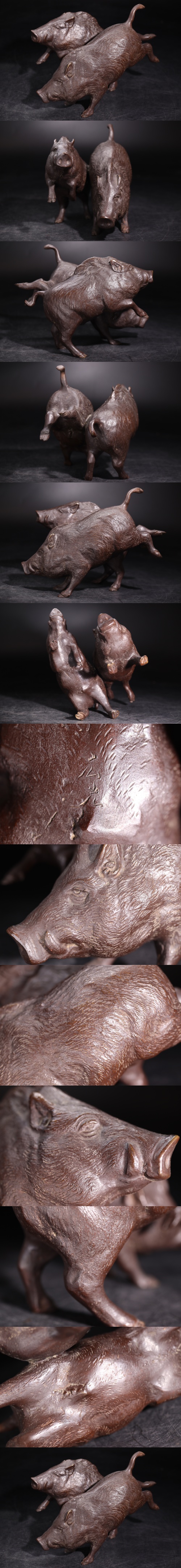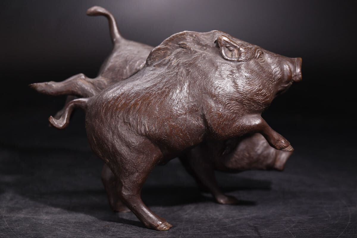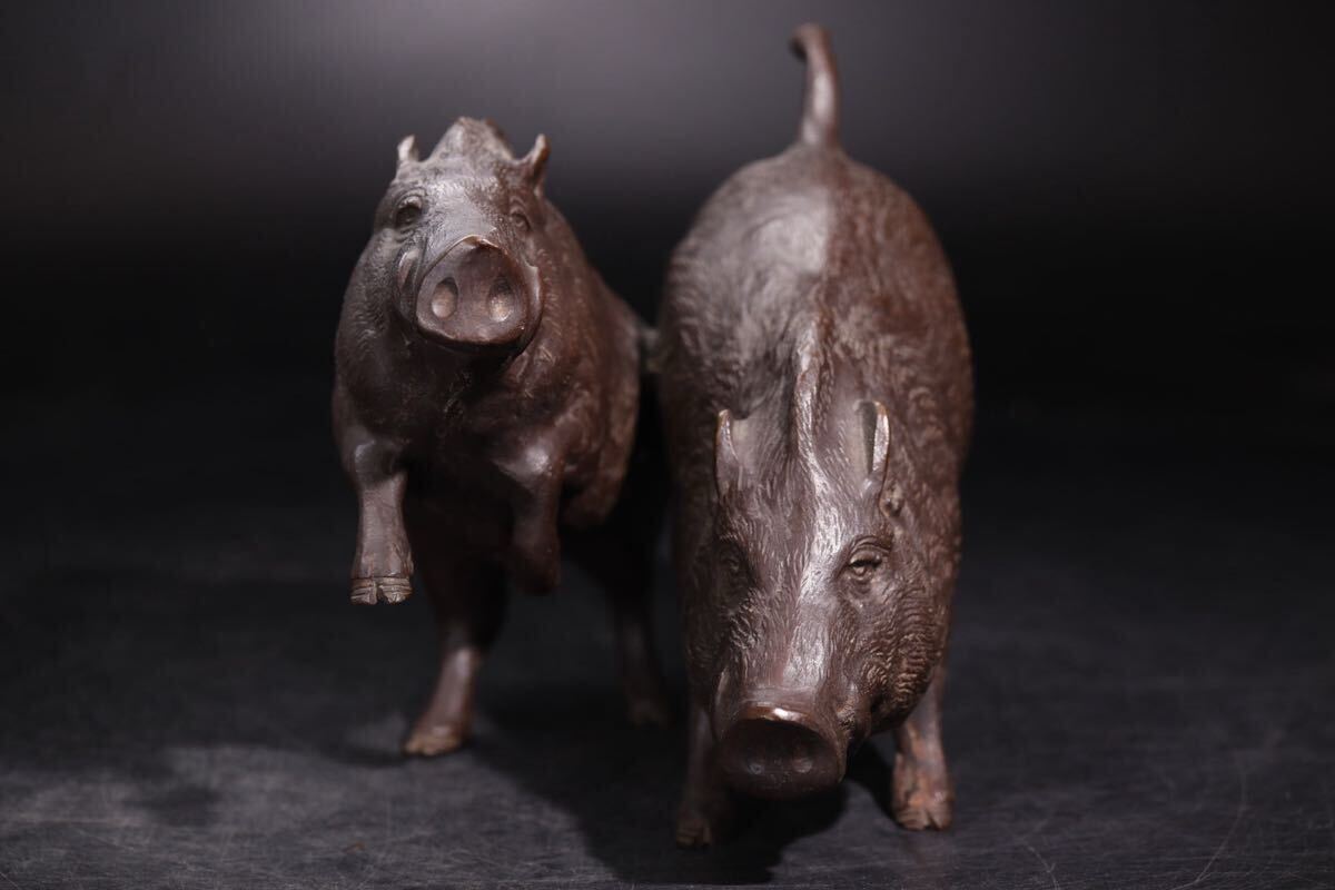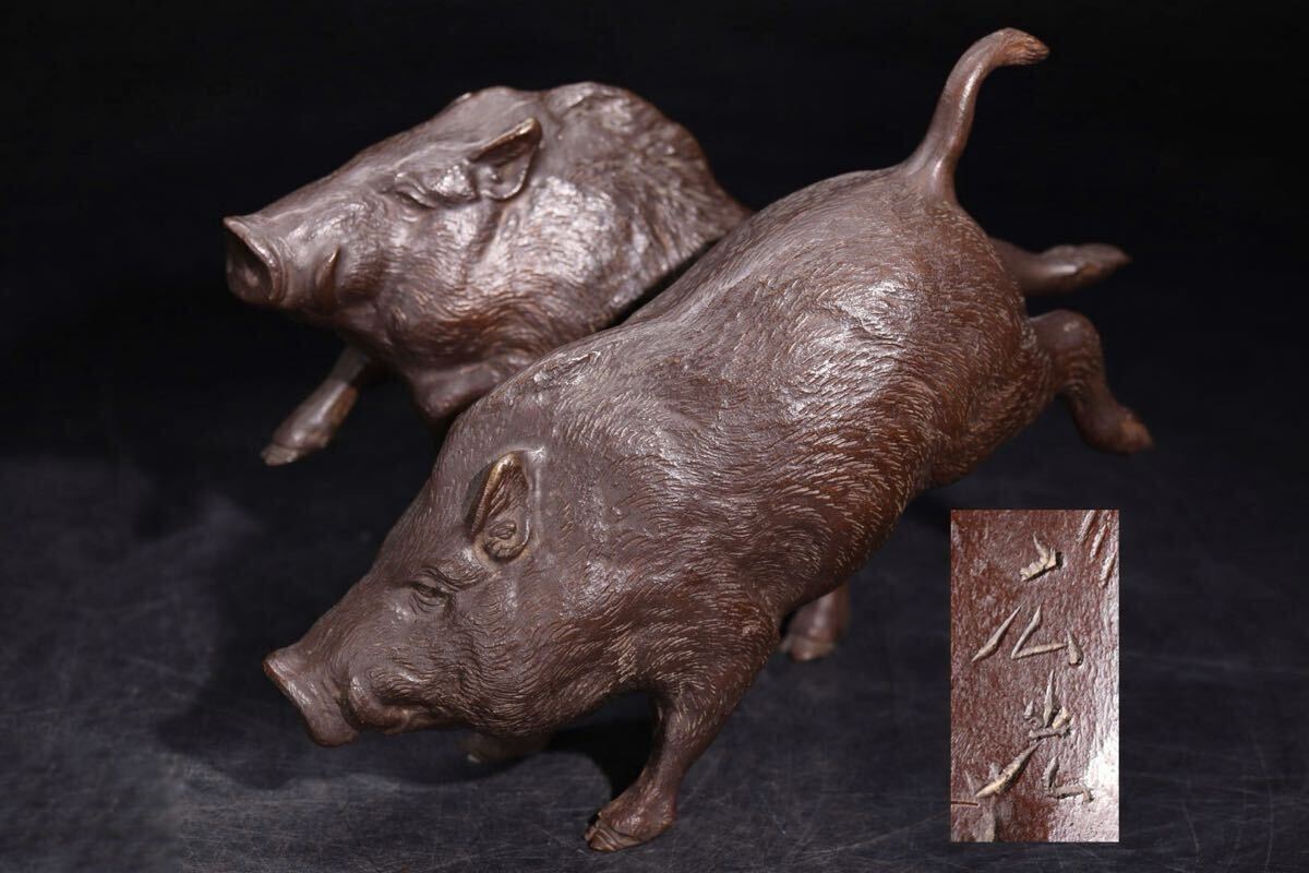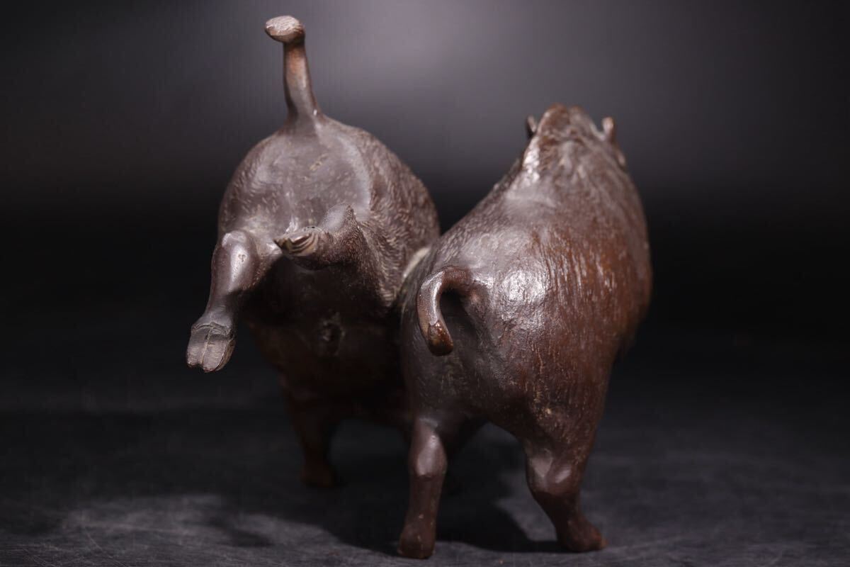 | 広光 在銘 銅製 豚 置物 / 金工 彫金 古銅 煎茶飾 検索: 中国 .G2764 |