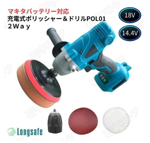 マキタ 互換 ポリッシャー 充電式 ドライバー機能付き カーポリッシャー 車磨き 洗車用品 研磨 傷消し コードレス 電動工具 shw198.2