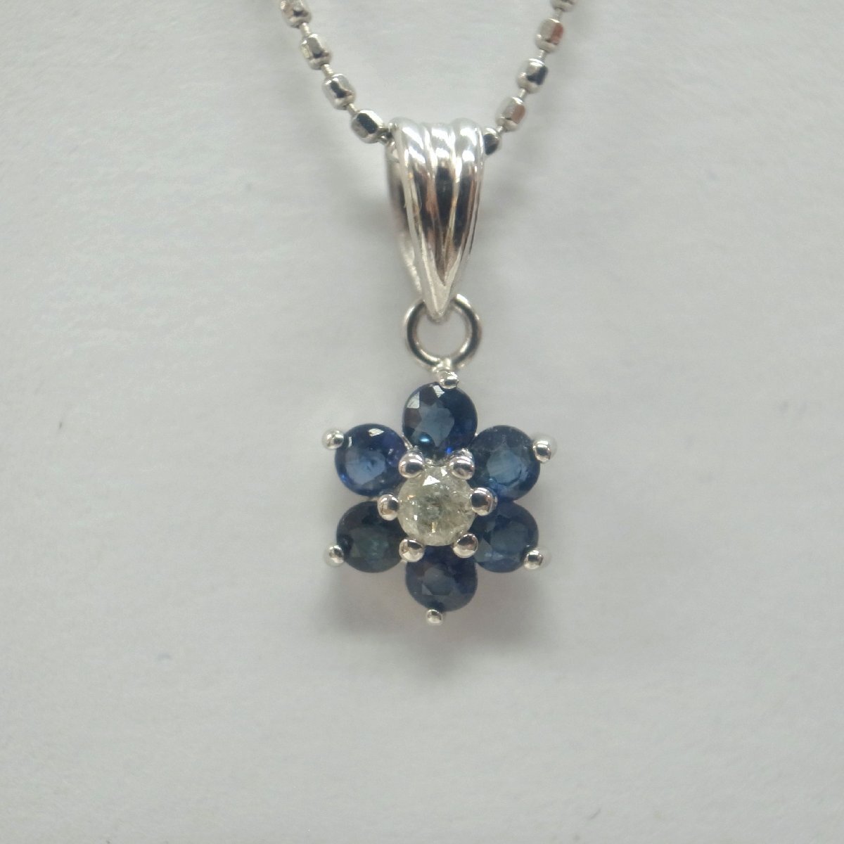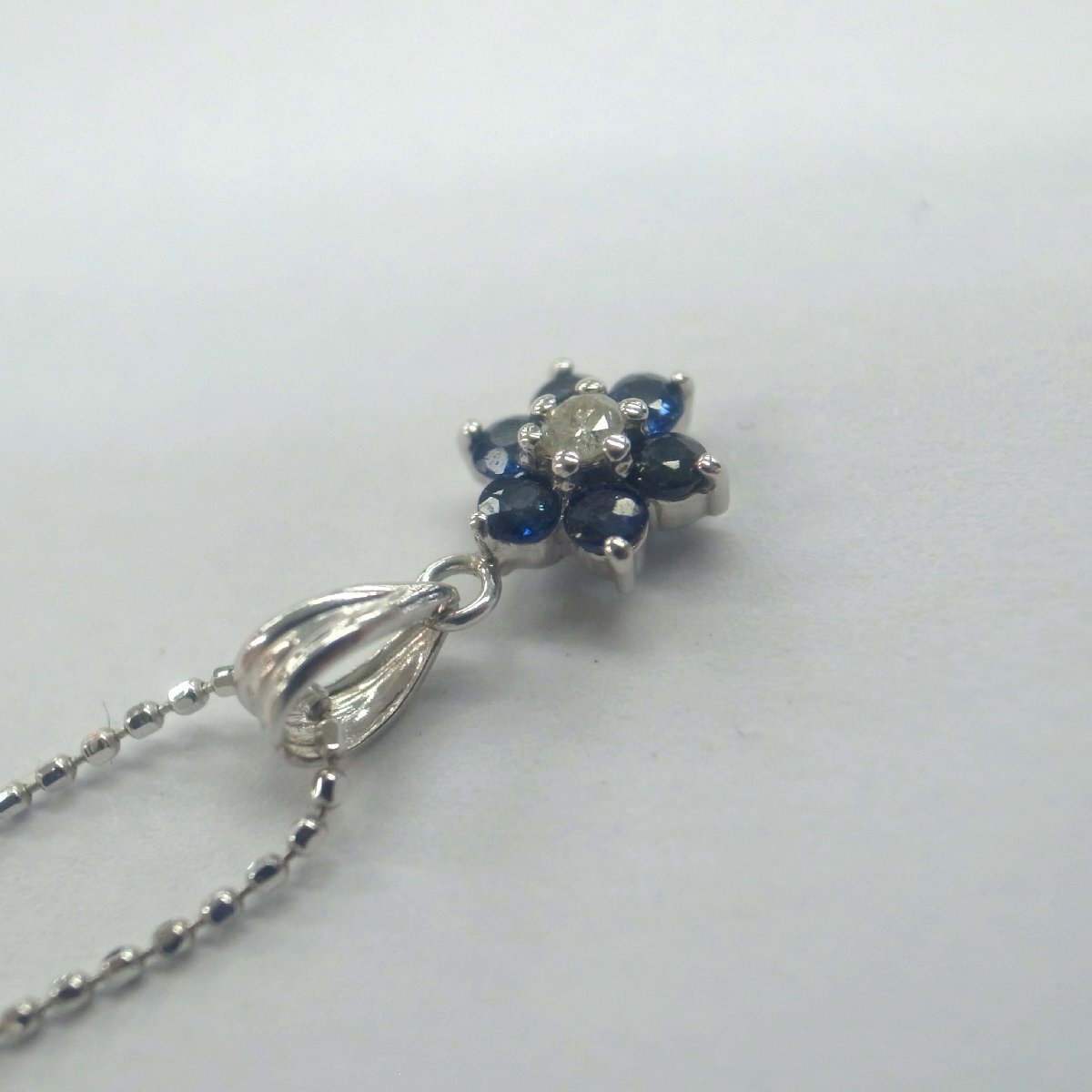 商品名 | K18ホワイトゴールド サファイア 0.2ct ダイヤモンド ネックレス ペンダント |