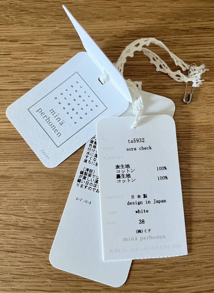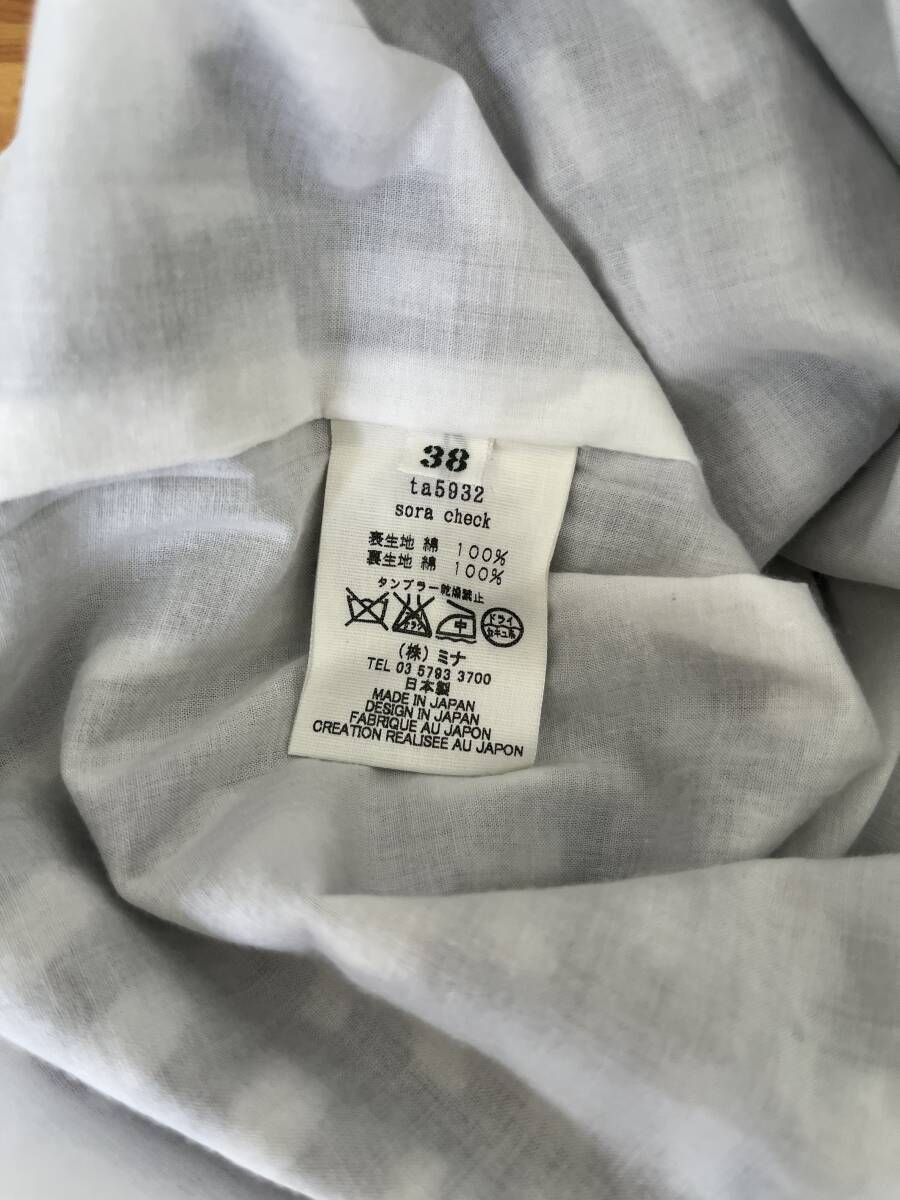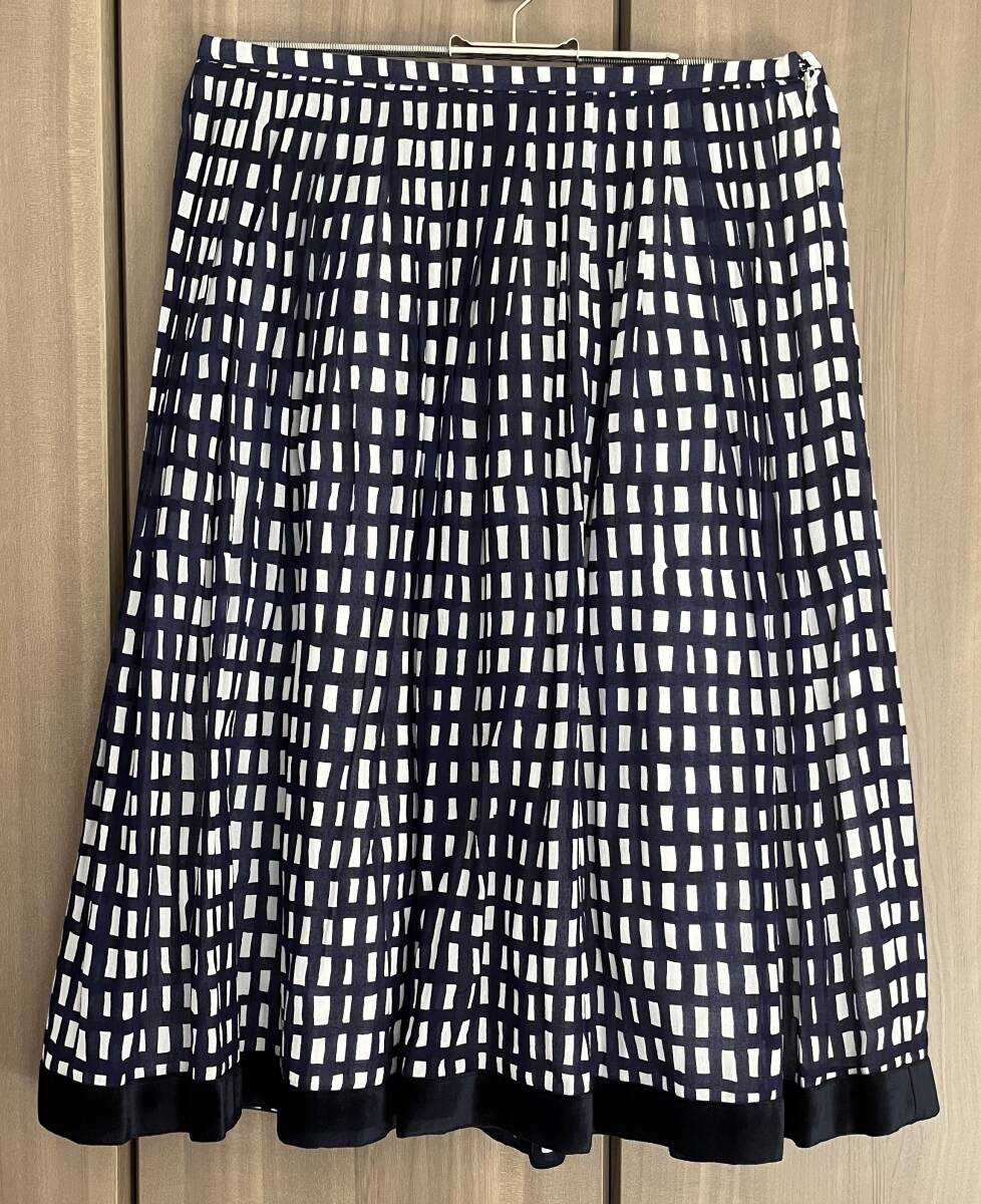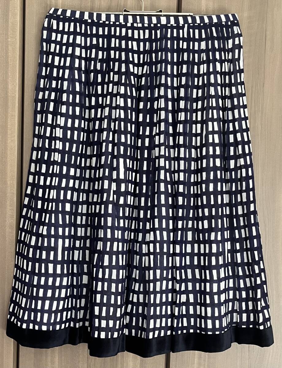 ふんわりとした透け感のあるコットンボイルオーガンジーの様な生地のネイビーブルーと白のチェック柄テキスタイルのスカート。