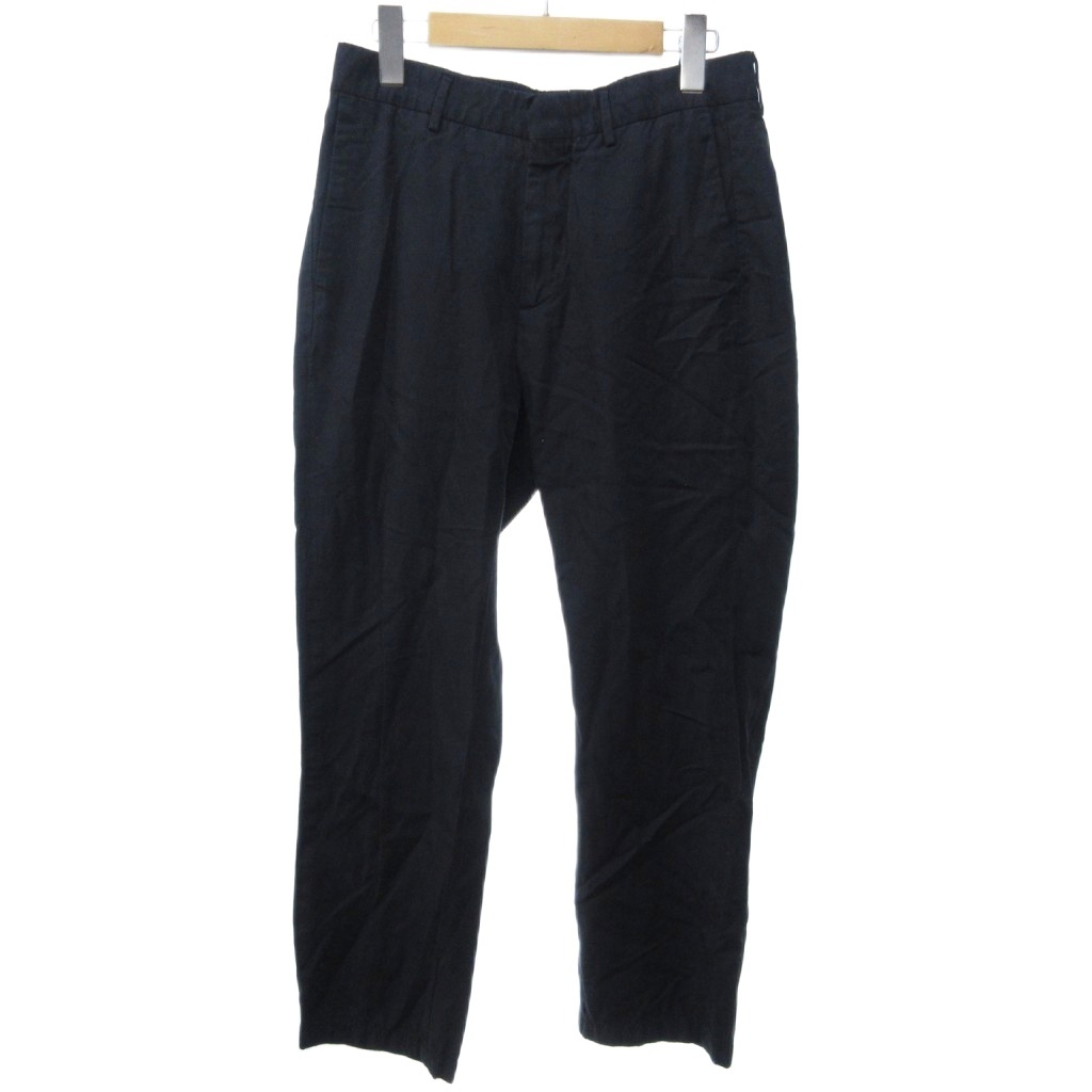 ダンヒル dunhill スラックス パンツ ストレート 無地 黒 ブラック 約S IBO79