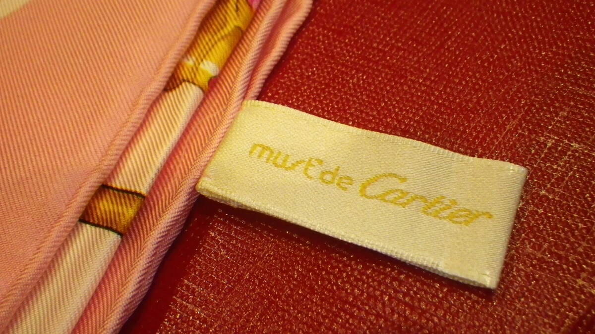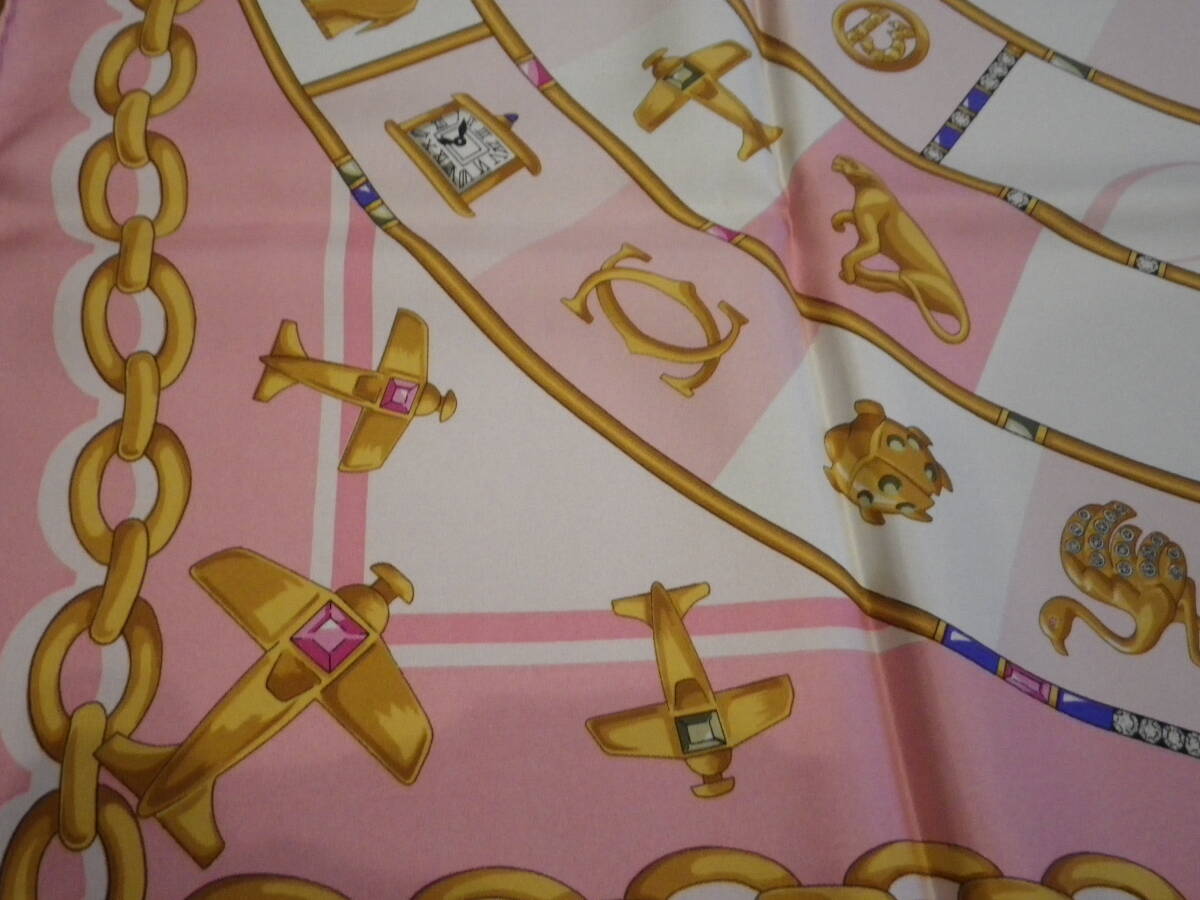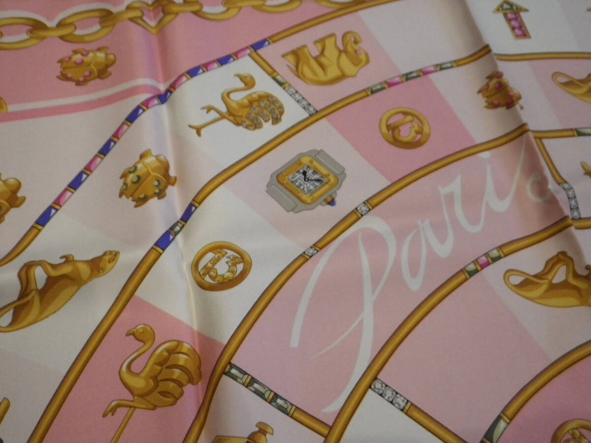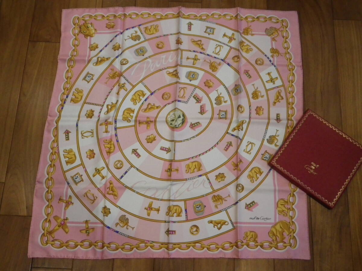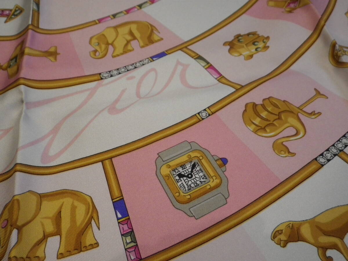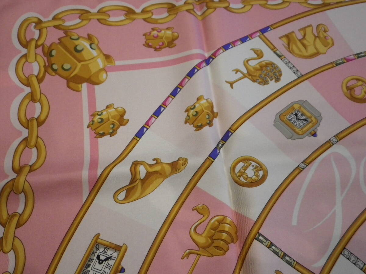未使用箱入り カルティエ アクセサリー柄スカーフ ピンク タンク サントス シルク100%