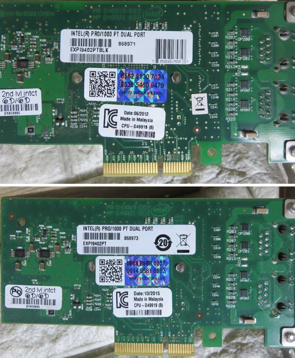 ★≪中古品≫Intel GLan PCIボード PRO/1000 PT Dual Port 2枚★