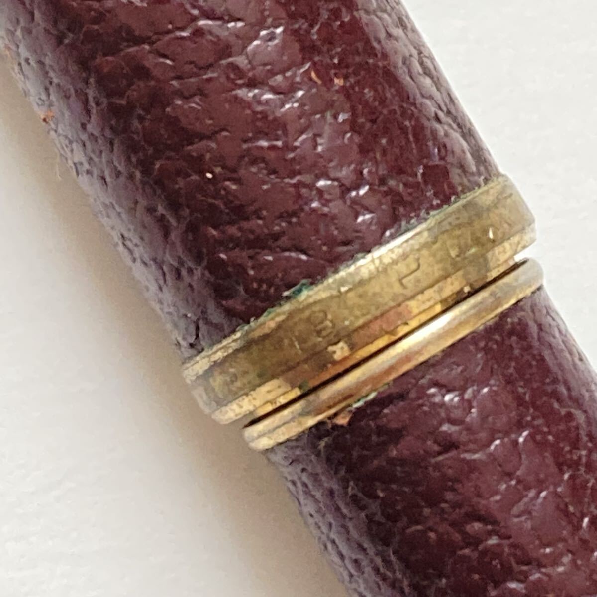 クラシックなレザー調ボディと赤軸のコンビが印象的な1本です。