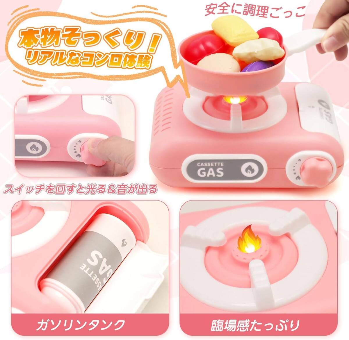 • 【リアルなガスコンロ】リアルな調理音と赤い光るガスコンロ。火を使わずに安全に遊べるので、お子様の料理体験をサポートします。