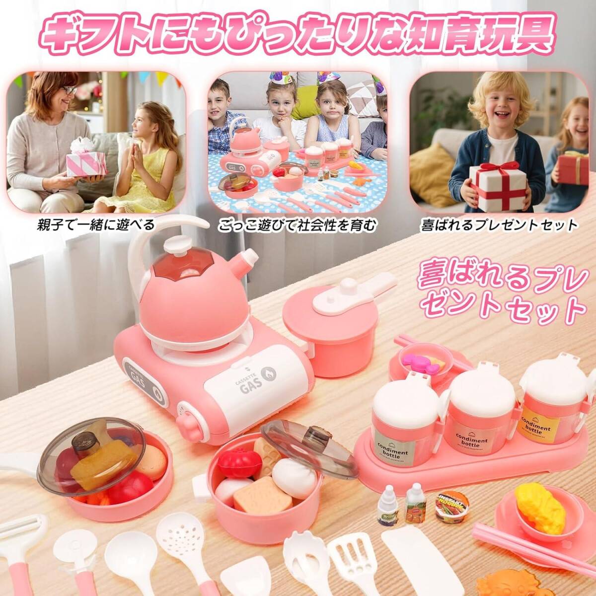 おままごとキッチンセット 51点 過家家ごっこ 音と光のガスコンロ 調理器具 ケ