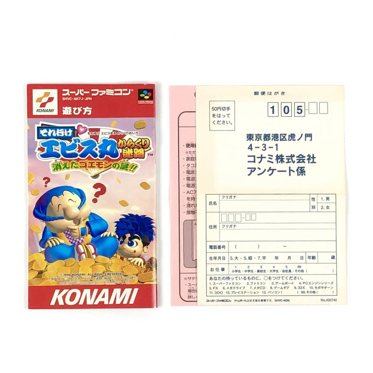 スーパーファミコン それ行けエビス丸 からくり迷路 箱説・ハガキ付き 痛みあり コナミ Super Famicom Soreyuke Ebisumaru CIB Tested