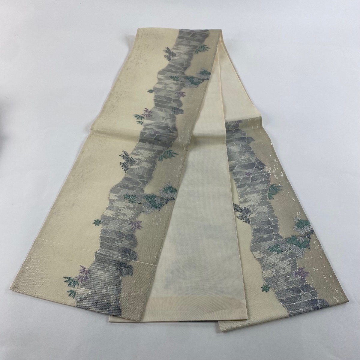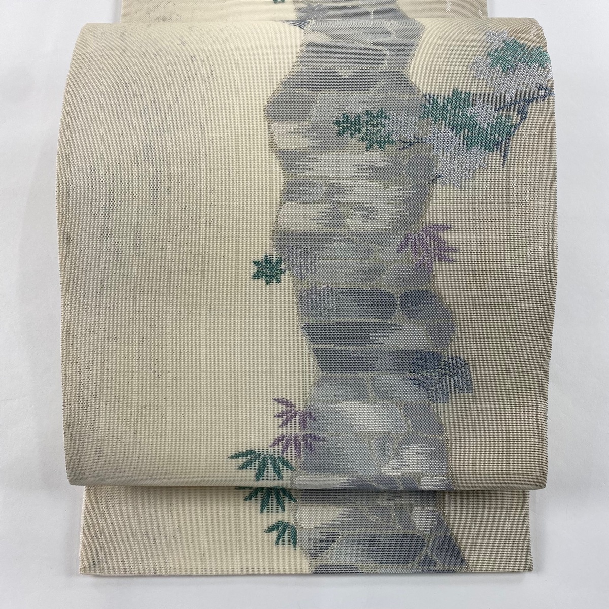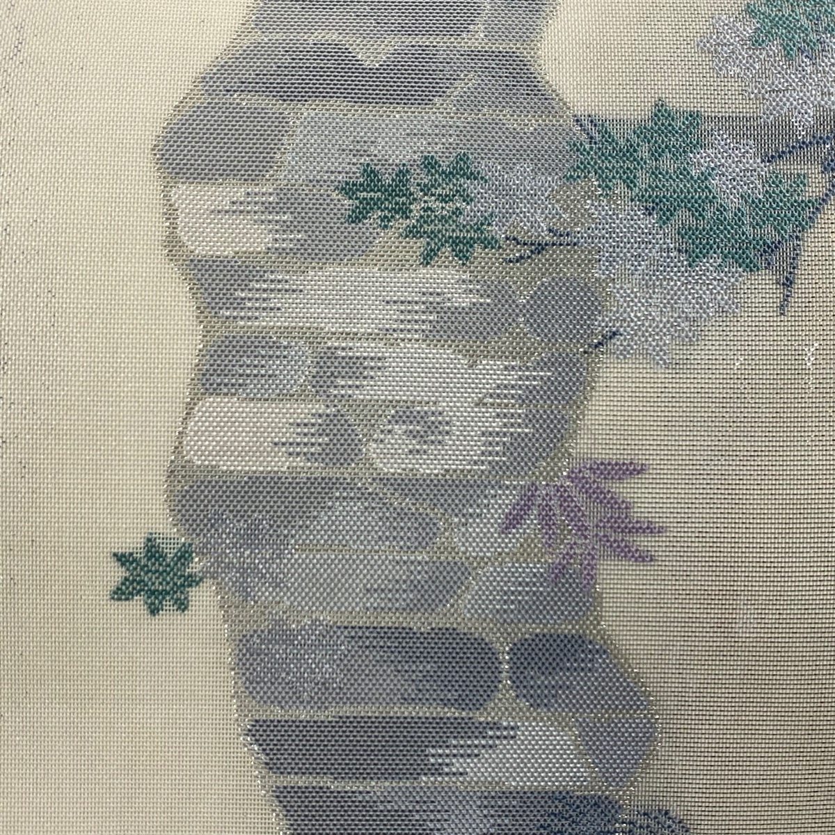 | 袋帯 美品 名品 夏帯 石畳 楓 銀糸 クリーム 六通 正絹 【中古】 |