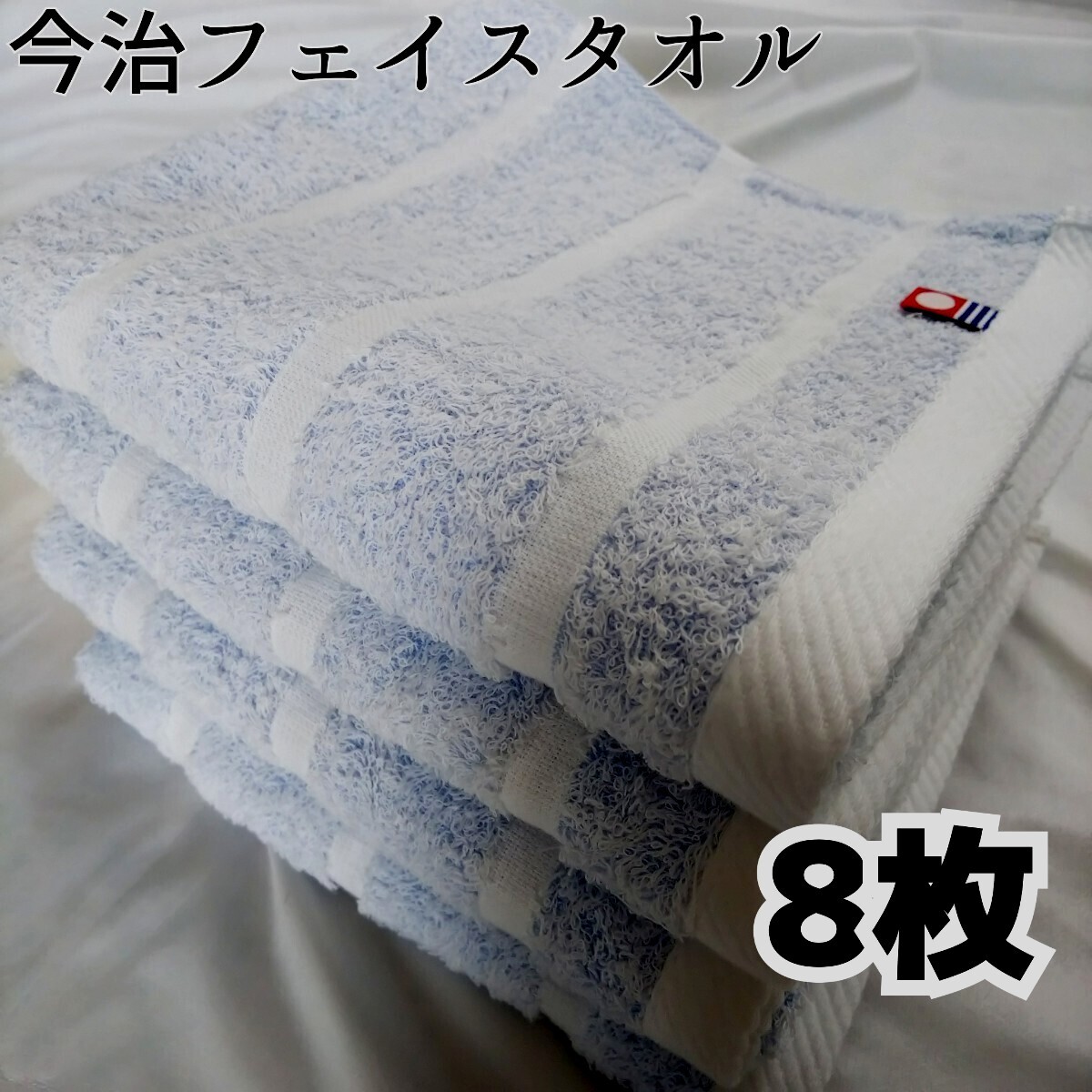 今治フェイスタオル ボーダー柄 ブルー8枚